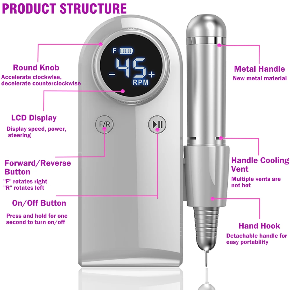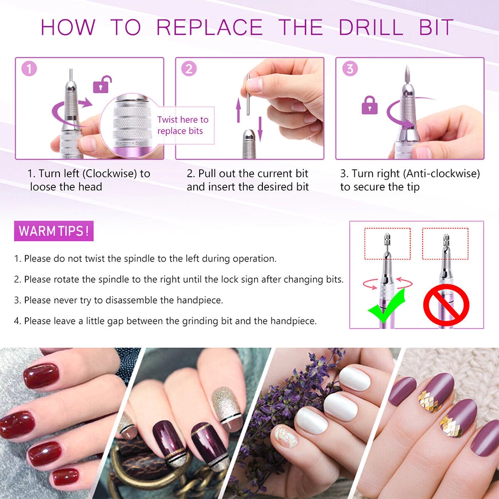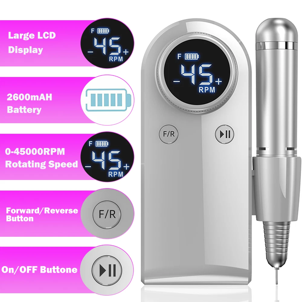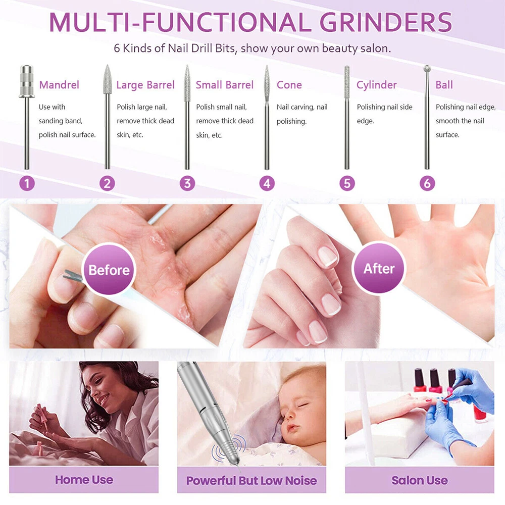 New 45000RPM Electric Nail File Drill Manicure Tool Pedicure Machine Set US Sell