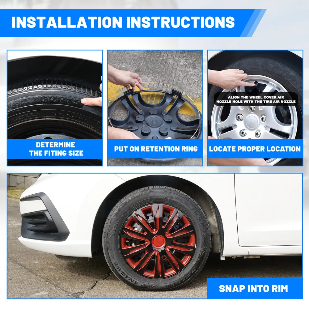 Home Payment Shipping Return Policy About Us Contact Us Feedback Title Other Car Refrigerator Front Bumper Rear Bumper Fender Flares Inner Fenders Side Steps Running Board A-Pillar Light Mount Brackets Headlights For Ford For Dodge For Chevrolet For Toyota For Mitsubishi Taillights For Chevrolet For Toyota For Ford For Jeep For Dodge For Honda For Nissan For Cadillac Fog Lights For Jeep For Dodge For Chrysler For Ford For Toyota For Chevrolet For Nissan For Lexus For GMC For Cadillac For BMW For Mercedes Benz LED Headlights For Ford For Dodge For Chevrolet For Toyota LED Taillights For Toyota For Chevrolet For Ford For Jeep For GMC For Honda For Cadillac LED Fog Lights For Toyota For Ford For Chevrolet For Mercedes Benz Jeep Headlights Tail Lights Fog Lights Refrigerator Bumper Fender Flares Inner Fenders A Pillar Light Mount Brackets Side Step More Chevrolet Headlights Tail Lights Fog Lights Refrigerator Bumper Ford Headlights Tail Lights Fog Lights Refrigerator Bumper Toyota Headlights Tail Lights Fog Lights Refrigerator Bumper Dodge Headlights Tail Lights Fog Lights Refrigerator Bumper GMC Headlights Tail Lights Fog Lights Refrigerator Bumper Product Features ✴ PERFECT FIT: This wheel hub cap is specifically designed to perfectly fit for 17-inch wheels, ensuring a seamless match and enhanced aesthetics. It complements the overall design of the vehicle, elevating its visual appeal. ✴ HIGH-QUALITY MATERIAL: Constructed from high-quality materials, this wheel hub cap guarantees durability and longevity. It withstands various road conditions and environmental factors encountered during daily driving, maintaining its pristine condition. ✴ EASY INSTALLATION: Installing this wheel hub cap is a breeze and requires no specialized tools or modifications. It comes with a user-friendly system, allowing for a hassle-free installation process by following the provided instructions. ✴ PROTECTIVE FUNCTION: Besides its aesthetic appeal, this wheel hub cap serves as a protective barrier for the wheels. It prevents scratches and potential damage caused by stones, debris, or other objects, safeguarding the wheel's surface. ✴ AFTER-SALES SERVICE: If There Is a Loss of Product Parts, or Any Parts of The Problem, We Can Provide After-Sales Service, Please Contact Us on The Order Page. Product Specificataion ✴ Type: Hub caps ✴ Number in Pack: 4 ✴ Color: Red Lacquer & Black Lacquer ✴ Material: ABS ✴ Compatible Wheel Diameter: 17 in ✴ Finish: Glossy ✴ Installation Type: Snap-On ✴ Model: ‎Universal Hubcap for Iron Wheels , Not fit for Chevy Equinox All Models, TOYOTA SIENNA 17 inch models, VOLKSWAGEN GOLF 17 inch models Not fit for 2010-2011 Fusion, 2010-2011 Mercury Milan, 2008-2012 Chevy Malibu, 2007-2010 Pontiac G6 What You Get ✴ 1 Set of 4 Hub caps and 4 retention rings Payment Delivery details Terms of sales About us Contact us Payment We accept PayPal, credit card , Apple Pay & Google Pay etc. Delivery details All items will be shipped within 1-3 business days after payment received, we will try our best to ship out as soon as we can, hope for your understanding. Please double confirm your address and contact information, which will help the delivery faster and more accurately. Note :buyers who purchase international products need to pay import tariffs!!! Terms of sales Professional installation is highly recommended. Any problem of the item please feel free to contact us first , please D o Not leave negative feedback before that, or simply return it within 60 Days in original condition. We will resolve it for you ASAP. About us Any questions please do not hesitate to contact us directly by eBay message . We will reply you within 24 hours asap, thanks for your understanding. Contact us Should you have any problem or require any further information please feel free to contact us . If you are satisfied with our product and service, please kindly leave us a positive feedback. On Feb 16, 2025 at 18:57:44 PST, seller added the following information: