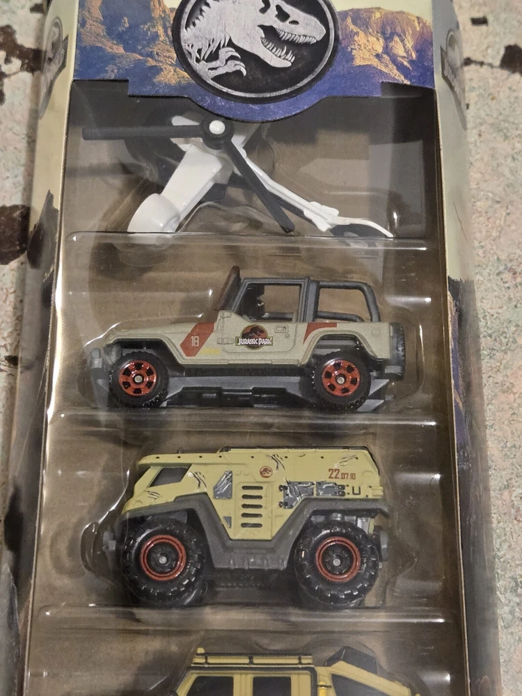 The "New 5 Pack MBX Jurassic World-Top Gun-City Matchbox Choose Your Set!" is a set of Matchbox die-cast cars in 1:64 scale featuring a multi-color design. The set includes vehicles from various themes such as Jurassic World, Top Gun, and City. It is recommended for children ages 3 and up, appealing to a wide age range from young kids to adults. The unopened box contains cars from the Matchbox brand, making it a collectible item for both boys and girls who enjoy cars and imaginative play.
