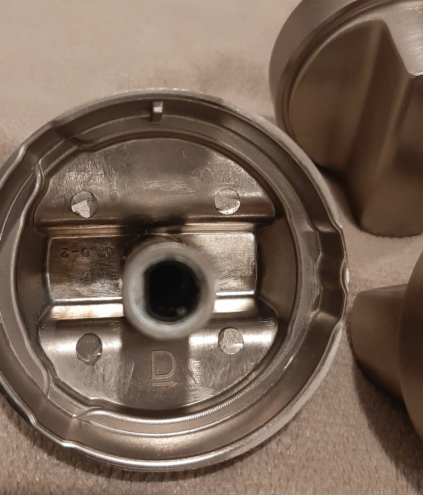 New in Box, 5 PC Oven Stove Replacement Knobs Brushed Silver Made of Metal Not Plastic