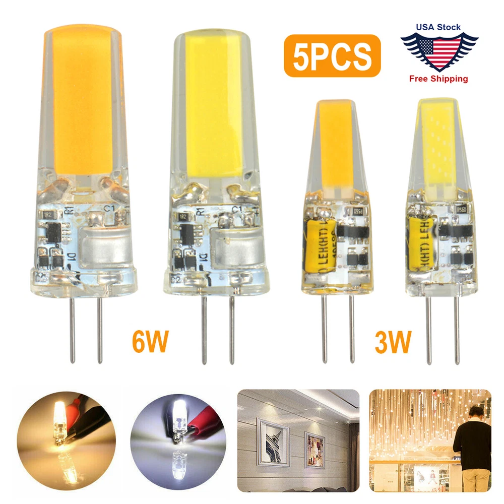 Product Description ⚡US Stock, the estimated delivery time is about 2-5 business days. ⭐100% Brand New and High Quality 💡Description: 1.ENERGY-SAVING - Replace 20 Watt T3 halogen bulb by 3 Watt LED, save 90% of your electricity bill. 2.EASY INSTALLATION - Standard G4 base,Can be easily Installs into and replace existing ordinary G4 halogen bulbs. 3.LONG LIFESPAN - Last incredible 50,000 hours,that is 22 years of use if used 6 hours per day. Lower maintenance costs by reducing re-lamp frequency 4.ECO-FRIENDLY - No lead or mercury, no UV or IR radiation.CE, ROHS, FCC qualified enable non-flickering light bulbs that are great for the environment and home. 5.APPLICATIONS - Chandeliers lamp,Ceiling lights,Under Cabinet Puck Light, Malibu landscape light,Chandeliers, Track Lighting, Wall Mounts Sconces, RV, caravan , marine boats, yachts etc. ⭐APPLICATIONS: Chandeliers,Kitchens,Living Rooms,Dining Rooms,Bedrooms,Hallways Shopping Malls,Office Building,Hotels,exhibition halls, hospitals ❇Specification Specifications: 3W/6W Color: Warm White(2700K-3000K), Cool White(6000K-6500K) Lumen: 210lm Material:Silicon Certification: CE, RoHS Input voltage: 12V LED lamp bead model: COB Number of LED lamp beads: 1 Luminous flux: 150LM/280LM Power: 3W/6W Lamp body material: silicone Lamp holder specification: G4 Dimmable: Yes Effective life: 30000H Dimensions: 3W 38*10mm, 6W 48*16mm Packing List: 5PCS Lamp 🎁Package includes: 5X or 10 G4 LED COB Bulb Payment We accept PayPal only. If buyer want to delay the payment because of financial problem, please contact me by the ebay message within 3 days Payment via PayPal (PayPal accepts all major credits/debit cards and eCheque) ECheque payment will tak e 3-10 days to get clear, thus DELAYing the shipment. Shipping Handling time: 1 business day (Orders are not processed on weekends & holidays) Tracking information will be sent once item is shipped. Local pick-up is unavailable at the moment. For international shipping and shipping to Guam, Hawaii and Alaska, Please contact us before placing the order. Item is shipped to ebay address. Leaving correct address can minimize delay. Terms For any issues with Defects, Return, Item Exchange request, please contact us first and send us a message first before opening any type of case or request. We devote ourselves making EVERY CUSTOMER in 100% Satisfactory and resolve any problem. We highly value and appreciate your business. Thank you. No returns will be accepted without an RMA number. Please contact us for the RMA number. Return is acceptable within 30 days of delivery. Return for replacement or money back is optional. Returned items must be in the brand new, unaltered and resalable condition. Seller is not responsible for any labor cost, expense in a dealer store, or damage due to wrong installation. Returns Return is accepted within 14 days after the buyer's receiving the item. (Excluding contrived damagement or misusage).100% money-back Guaranteed! All product will be tested in 100% before delivery.If the item is defected by the processing of postage,Buyer has up to 14 days from date of receipt for exchange of a new one.All shipping charges for returned products are to be paid by the buyer,Please contact us for the return address Contact Us All messages will be answered within 24 office hours. Please contact us either by clicking "contact seller" in the "purchase history" section or simply click "ask a question" at the bottom of this page. If you are unsatisfied with our item or service, please contact us before leaving any feedback. We are committed to resolve all issues in a friendly and satisfactory manner. We always reply to messages within 2 business days (off-duty at weekend). If you do not get a response from us, then please check your junk or spam mailbox. powered by