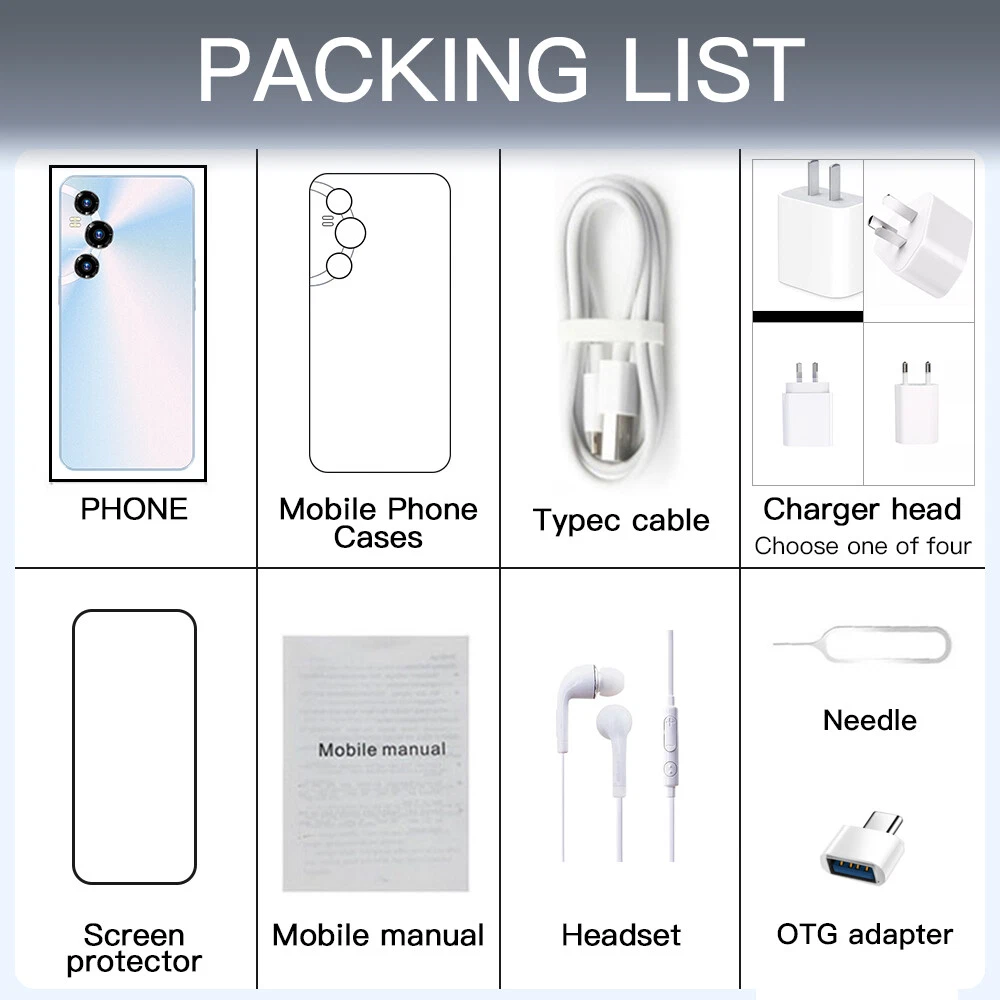S30 Ultra 5G Smartphone 7.3" 16GB+1TB Android Mobile Phone Dual SIM OTG Type C Factory direct sales, better quality but lower price is our target and mission! Features: - 7.3inch FHD Display The S30Ultra delivers the viewing experience you always wanted, With a massive 93% screen-to-body ratio on a 7.3"inch screen. - 50MP Front Camera Clear and Stylish Selfie The S30Ultra world-leading 50MP front camera turns your every selfie into a work of art experience greater brightness, color vibrancy, clarity and dynamic range. Even in the dimmest light, whenever you need it, your S30Ultra is right there with you, capturing every moment with crystal-clear precision, Turn your selfies into masterpieces and shine in every photo. - 108MP Rear HD camera The S30Ultra features a 108MP camera combination. The main camera sports a large f/1.8 aperture and 1.28um pixels, This strong combination boosts photo-sensitivity in backlight or low light, Just point and shoot, and S30Ultra will make sure your pictures remain clear and bright. - Face Access The S30Ultra also supports facial recognition upon activation,S30Ultra scans your facial features and unlocks instantaneously accessing your phone has never been so easy, or so fun. - Powerful Performance The Snapdragon 8 gen2 mobile platform with 10mm process technology makes young people who love the young and other popular games. The game is on and lower. - Android 13.0 The new interactive design makes the operation simple and simple, the use of the mobile phone is so simple and straightforward, everything is handy. - Dual SIM card supports TF card Dual card dual standby, card slot does not distinguish between the main and the deputy, supporting the worlds 50 major communication carrier networks Specification: 1.Model No.:S30Ultra 2.Platform : Snapdragon 8 gen2, Deca Core (Latest 10 Core) 3.Standby: Dual sim dual standby 4.Screen: 7.3HD+ Full Display 1440*3200 5.Speaker: 1511 Box Speaker 6.Frequency: GSM850/900/1800/1900MHz, 3G:WCDMA850/1700/1900/2100MHz *4G:TDD(B38\B40\B41),FDD (B1\2\3\4\5\7\8\20\28A\28B) *5G 7.Vibration: Support 8.Colors: Black,White 9.Memory: 8GB RAM+256GB ROM 10.Multi Media: MP3/MP4/3GP/FM Radio/Bluetooth 11.Camera: 50MP+108MP 12.Multi Function: Full screen, Face recognition, Dual SIM,OTG, Wi-Fi, GPS,Gravity Sensor, Alarm ,Calendar ,Calculator ,Audio recorder ,Video recorder, WAP/MMS/GPRS, Image viewer,E-Book,World clock,Tasks card, rear flash 13.Languages: Muti-language support 14.Others: Android OS 13.0 System 15.Battery: 8000mAh Lithium-ion battery 16.Ultra unibody 17.TypeC input Packing list: 1 x Smartphone 1 x Charger Adapter 1 x Headphones 1 x User Manual 1 x phone case 1 x Protection film 1x OTG input