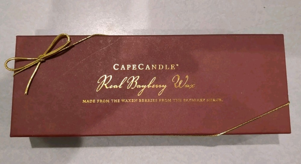New 8" Real Bayberry Tapers 1 Pair Cape Candle, USA Nice fragrance Brand New in banded Box Band removed to take pictures only Have 2 sets available