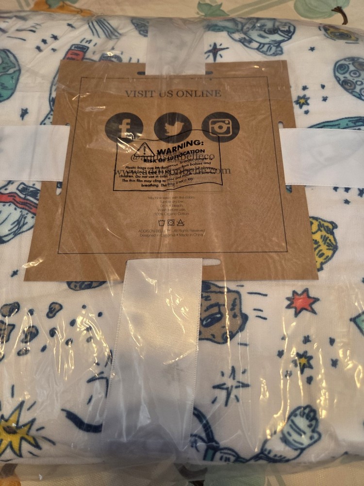 New 100% Organic muslin cotton everything blanket by Addison Belle. Outerspace theme. 47 x 47. New in package