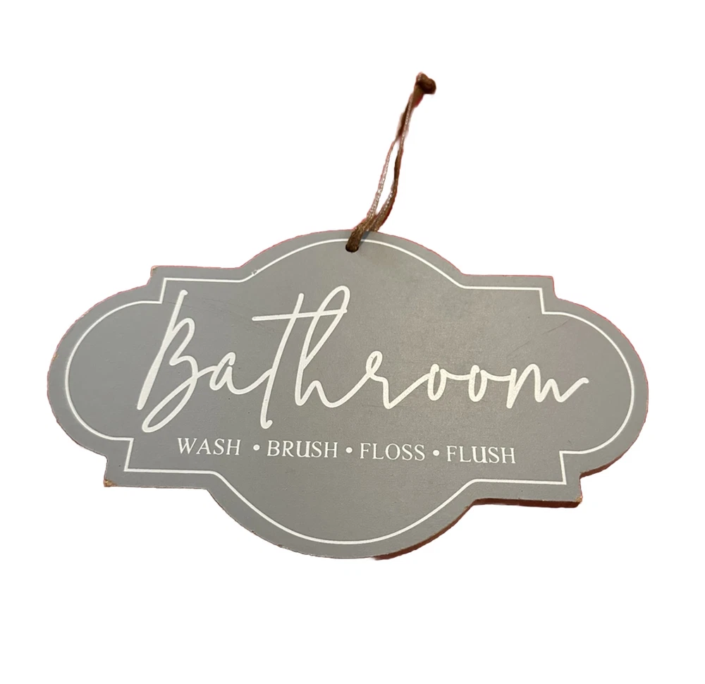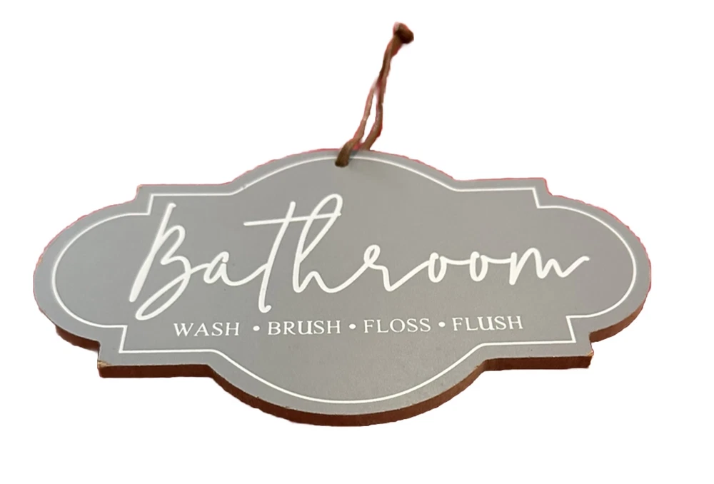 Finish:MattePattern:BorderedSize:5x8Additional Parts Required:NoEngraved:NoItem Height:0.5 inColor:Gray/WhiteType:Wooden SignFeatures:Decorative, Hanging, Ready To Hang, Leather hangerMaterial:WoodCountry/Region of Manufacture:ChinaVintage:NoMounting:HangingCare Instructions:Clean with Damp ClothRoom:BathroomShape:AsymmetricalHandmade:NoBrand:UnbrandedUPC:430001865702Personalize:NoSubject:Bathroomgtin13:430001865702Theme:BathroomItem Width:8 inStyle:ContemporaryDepartment:Adults