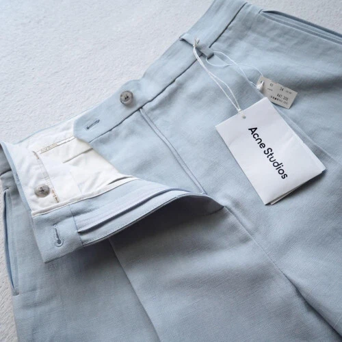 New Acne Studios linen blend trousers with high waist and tucks Description When purchasing, please inquire about product details such as size. Payment Please pay within 5 days after auction is finished. Term of Sale Money back guarantee within 14 days if returned by customer. We offer 14 days money back guarantee for defective products. However the buyer must pay money for returning it back to us. About Us A specialty shop offering a wide variety of carefully selected Japanese brand items. Unless marked "used" all of our inventory is brand new, so you can feel confident about your purchase. Even if you think to yourself, "But the item I want is only available in Japan.", make sure to consult with us before giving up hope. We will look for and suggest the best products on your behalf. International Buyers - Please Note Import duties, taxes and charges are not included in the item price or shipping charges. These charges are the buyer's responsibility. Please check with your country's customs office to determine what these additional costs will be prior to bidding/buying. These charges are normally collected by the delivering freight (shipping) company or when you pick the item up - do not confuse them for additional shipping charges.