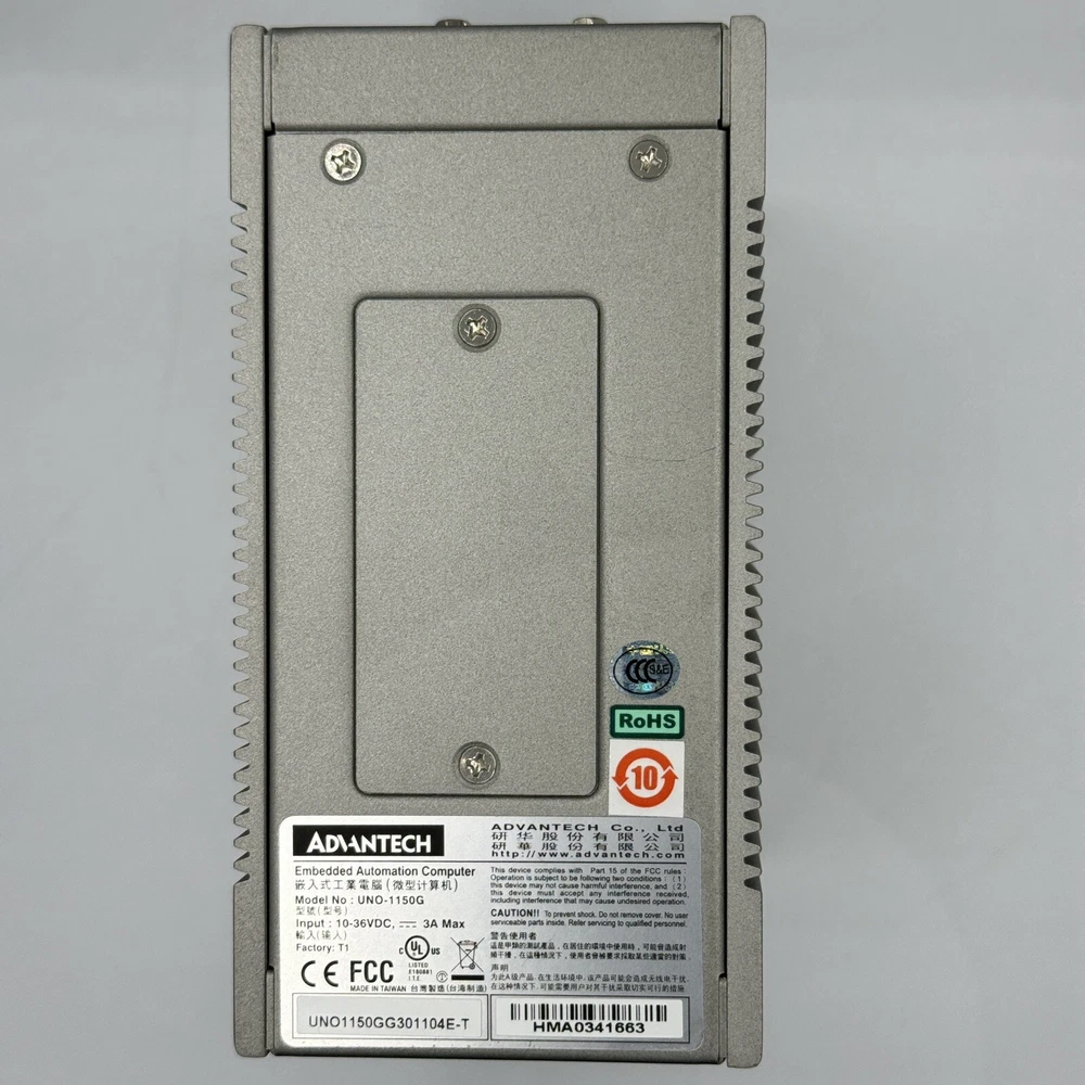 Serial Number : HMA0341663 A made in Taiwan. Delivery is within 2 to 7 via DHL. New Advantech UNO-1150G 500Mhz AMD based industrial Embadded automatic computer. This unit is a brand new never used. It will be very well packed and very fast shippid within one business day. Specifications Audio Line in, Line out CPU AMD Geode LX 800 (500MHz) Dimensions (W x H x D) 71 x 155 x 140 mm (2.8" x 6.1" x 5.6") Display DB15 VGA connector, supports up to 1024 x 768 @ 60 Hz Enclosure Aluminum + SECC Humidity 95% @ 40° C (non-condensing) Indicators LEDs for Power, IDE, LAN (Active, Status) and Serial (Tx, Rx) Keyboard/Mouse Ports 1 x PS/2 LAN 2 x 10/100 Base-T RJ-45 ports Memory Onboard 256 MB DDR SDRAM Mounting DIN-rail, Wallmount Operating Temperature -10 ~ 60° C (14 ~ 140° F) OS Support WES Windows XP Embedded, Windows 2000 & XP, Windows CE 5.0/6.0, Linux Power Consumption 15 W (Typical) Power Requirement 9 ~ 36 VDC (e.g +24 V @ 1 A) (Min. 24 W), AT Remote Management Built-in Advantech DiagAnywhere agent on Windows CE/XPe Serial Ports 1 x RS-232, 2 x RS-232/422/485 with DB9 connectors,Automatic RS-485 data flow control Storage Temperature -20 ~ 80° C (-4 ~ 176° F) System Design Fanless with no internal cabling USB 2 x USB, OpenHCI, Rev. 1.1 compliant Watchdot Timer Programmable 256 levels timer interval, from 1 to 255 sec