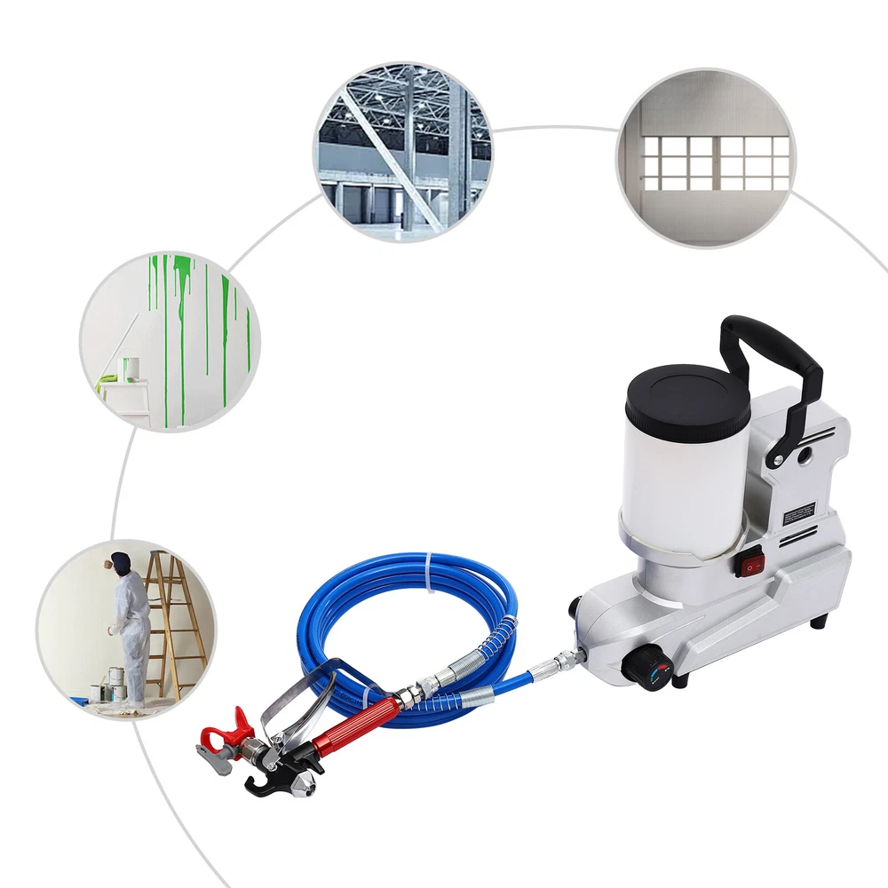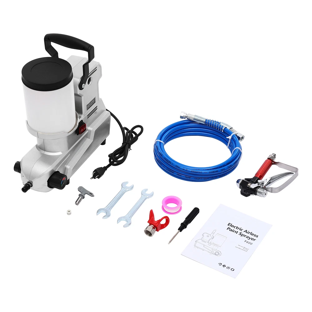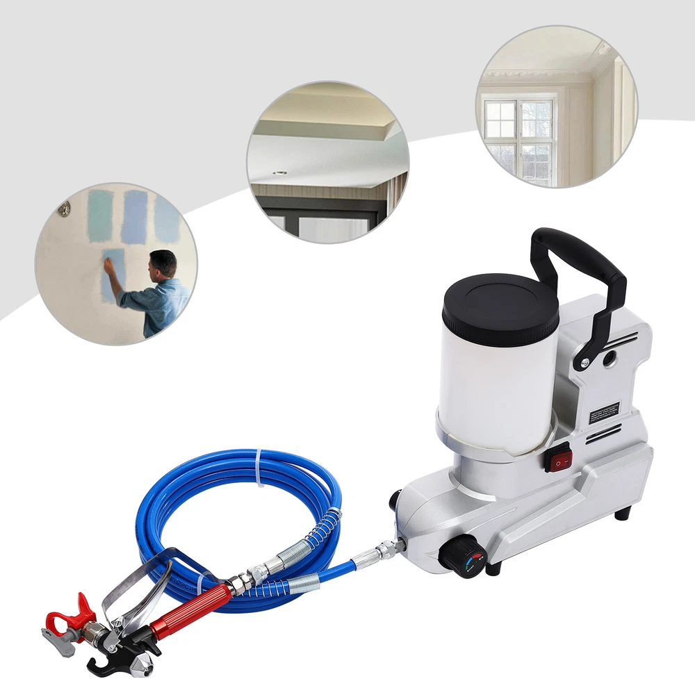 New Airless Sprayer Portable Small Real Stone Paint Paint Sprayer Small Paint Description Are you still struggling with uneven walls after spraying? Then take a look at this high-pressure airless sprayer from us. It is made of high-quality materials, and is sturdy and durable. The premium and powerful motor makes it fast and efficient in spraying. The unique high-pressure airless spraying technology enables more even and tight spraying, while saving paint, reducing paint splashing and evaporation, and protecting the environment and operator's health. It will be a good helper for your efficient spraying work. Key Features Build to Last: The premium plastic makes it sturdy, rust-proof, and corrosion-resistant, so you can use it for a long time without frequent replacement. Excellent Performance: It adopts high-pressure airless spraying technology, which atomizes paint into small particles through high pressure without the need for compressed air, forming a uniform and tight painting, improving painting adhesion and coverage effect. High Efficiency: With a premium copper motor with 850rpm maximum speed, 1600W high power, and high spraying flow rate (84.54Oz/min), the paint sprayer can achieve fast paint spraying, saving your time and effort. Adjustable Pressur e: A adjustable pressure knob provides a variable flow rate to meet different needs, making paint spraying more accurate and even. Save Paint: Due to the full atomization of the paint, the waste of paint is reduced. Compared with traditional spraying methods, it can save a large amount of paint and reduce the coating cost. Good Heat Dissipation Effect: The built-in cooling fan and large cooling holes ensure a good heat dissipation effect, which can effectively avoid excessive body temperature, thereby extending the service life of the machine. Easy to Carry and Store: It is compact(14.2*6.3*13.2in) and saves storage space. The lightweight(16.53 lbs) and the practical handle allow you to change workplaces easily, saving time and effort. Customer Service : We aim to provide quality products and services. If you have any problems, please feel free to contact us. We will reply and solve the problem for you as soon as possible. Details Waterproof Switch: It can prevent water and dust from entering and extend the service life of the machine. Flexible Hose: A 16.4ft long hose allows for a large working range and enables you to easily paint high areas such as ceilings. Long Power Cord: The 5.91ft long power cord provides you with more usage positions. Rubber Feet: The four rubber feet have high friction and are not easy to slip, improving the stability of use. Large-capacity Hopper: The 0.66Gal hopper can be used for a longer time at once, so you don't have to add paint frequently. Application It is suitable for furniture, shutters, lattices, sheds, doors, doorframes, handrails, indoor ceilings, indoor walls, fences, garages, decks, and house interior and exterior painting applications, including various water-based and latex paints. It can be used for indoor and outdoor fire prevention, heat preservation and rust-proof material spraying operations, garden spraying, and all spraying operations in workshops and construction sites. Specification Material: Plastic, Rubber Color: Silver Style: Modern Assembly Required: Yes Mount Type: Free Standing Motor Type: All-copper, Brush Motor Motor Power: 1600W Voltage: 110V, 60Hz Plug Type: US Standard Max. Spraying Flowrate: 2.5L/84.54Oz/min Max. Output Pressure: 120MPa Hopper Capacity: 2.5L/0.66Gal Hose Length: 5m/16.4ft Power Cord Length: 1.8m/5.91ft Motor Speed: 0-850rpm Product Size: 36*16*33.5cm/14.2*6.3*13.2in Package Size: 41*39*20cm/16.14*15.35*7.87in Gross Weight: 8kg/17.64 lbs Net Weight: 7.5kg/16.53 lbs Package Included 1* High-pressure Airless Sprayer 1* Sprayer Gun 1* English Manual 1* Hose Other Accessories for Assembly Notes Please read the operating manual completely before use. And pay particular attention to the safety instructions included. Please note that oil-based coatings need to be diluted before use and cleaned promptly after use. Please note that this product does not include any paints. The efficiency of spraying depends on the individual use, the type of nozzle and the material being sprayed, so there is no fixed value. Please allow the slight color difference caused by the shooting light and 1-3cm error due to manual measurement. Please make sure you do not mind before you order. The color of the accessories is random. Thank you for your understanding. Payment Delivery details Terms of sales About us Contact us Payment We accept ebay payment 。 Fees such as import duties, taxes are not included in the item price or shipping costs. These charges are the buyer's responsibility. Delivery details Shipping: 2-9 working days to: USA Terms of sales We maintain high standards of excellence and strive for hundred percent customer satisfaction. Feedback is very important to us. We hope that you contact us immediately before you give neutral or negative feedback, so that we can address your concerns. It is impossible to address issues if we do not know about them! About us Your satis faction is our ultimate goal. We work hard to earn your trust and future business. Our certified technicians have tested each item before shipping. The unit comes with 1 year limited warranty on all manufacturing defects. a) If you receive a defective item, you may return it or ask for a discount. Please contact us within 14 days after you receive the package. b) What you returned must be intact and in its original packaging as re? u. Customer is responsible for shipping costs of the returned item. c) We will cover the cost of shipping back t with the shipping rate indicated in the registration page. We will send you a new unit or refund the full payment you paid. Thank you. Contact us Business Hour Business Hour: Monday To Friday: 8:30 AM to 5:00 PM (Beijing China time) Due to time zones, our reply to yo