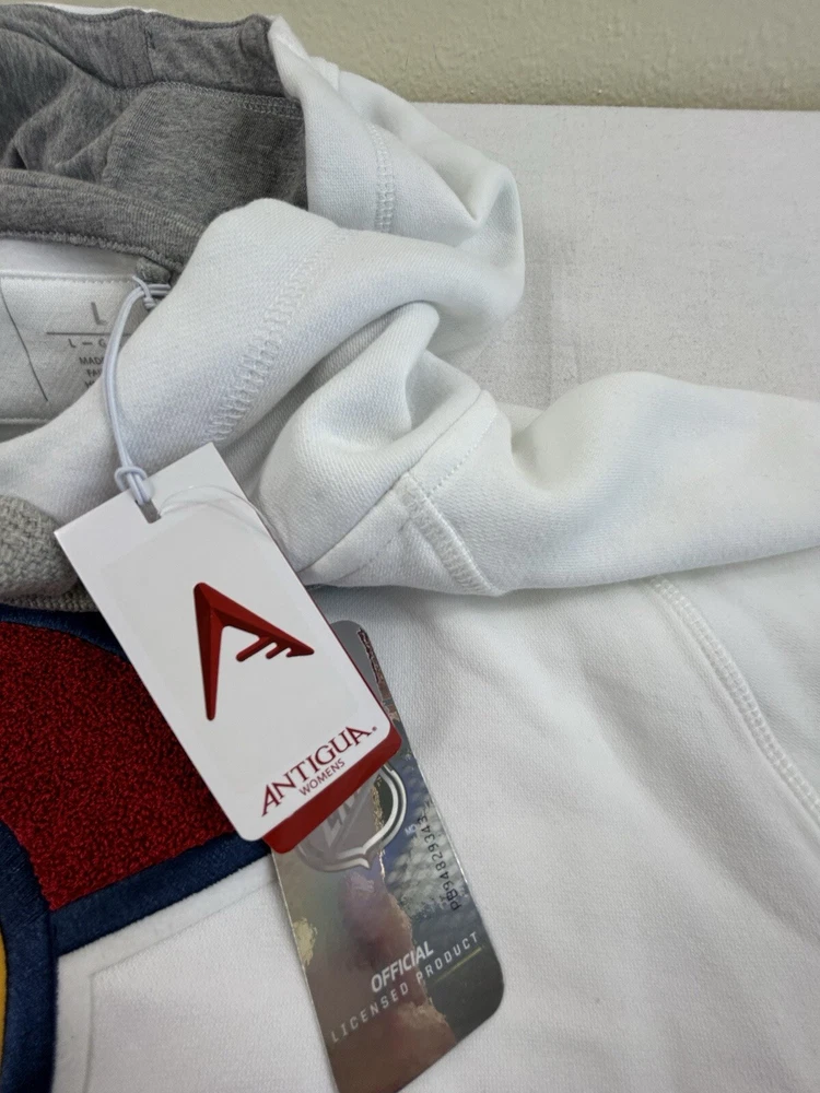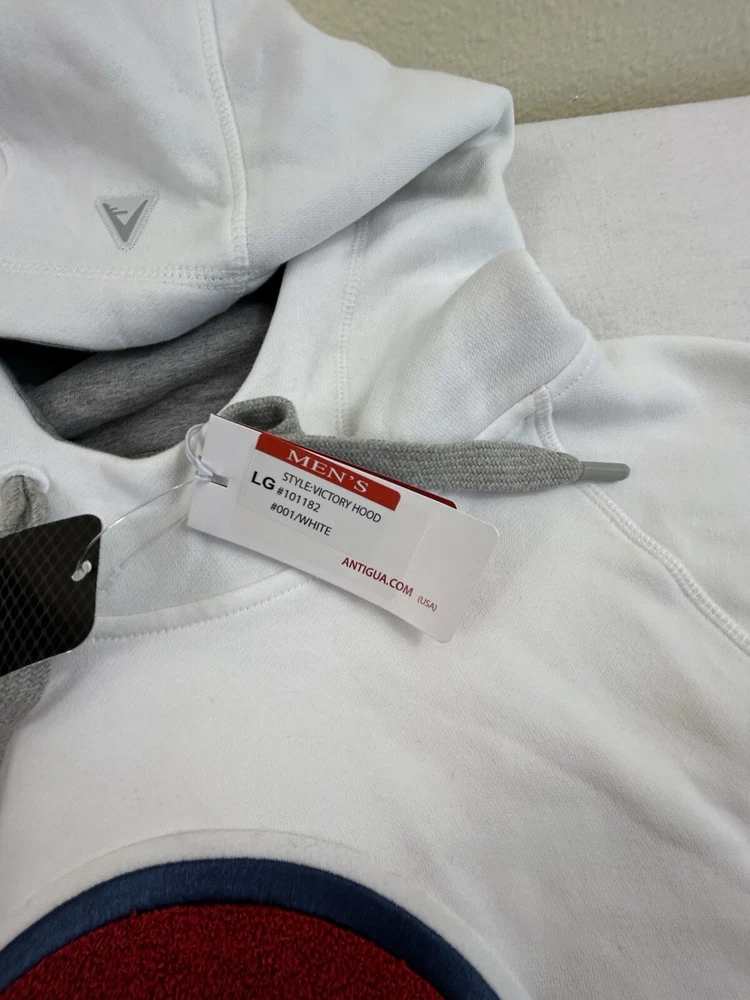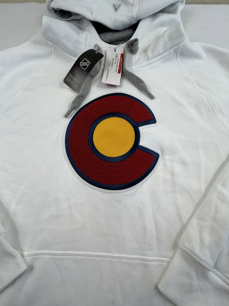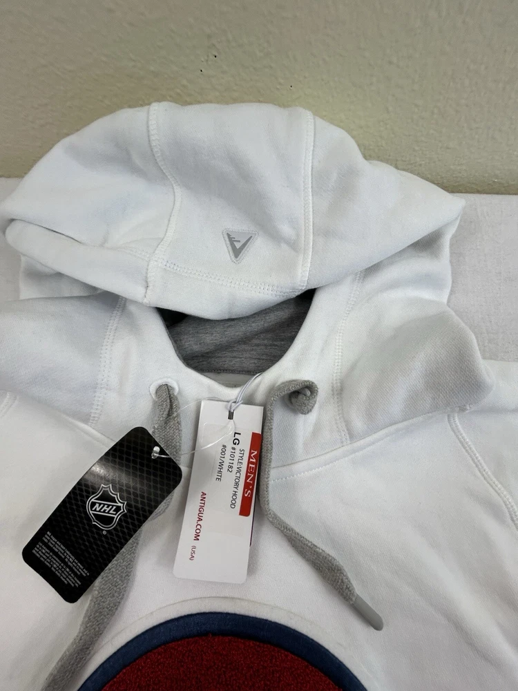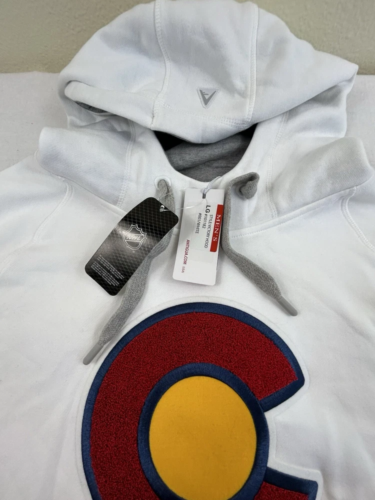 Show off your love for the Colorado Avalanche with this Antigua men's hoodie sweatshirt. The white sweatshirt features the team's alternate logo and is made with high-quality materials. It's perfect for any fan looking to stay warm and comfortable during the games. The size is L and it's designed specifically for men. This sweatshirt is a must-have for any hockey fan who wants to show their support for the team.