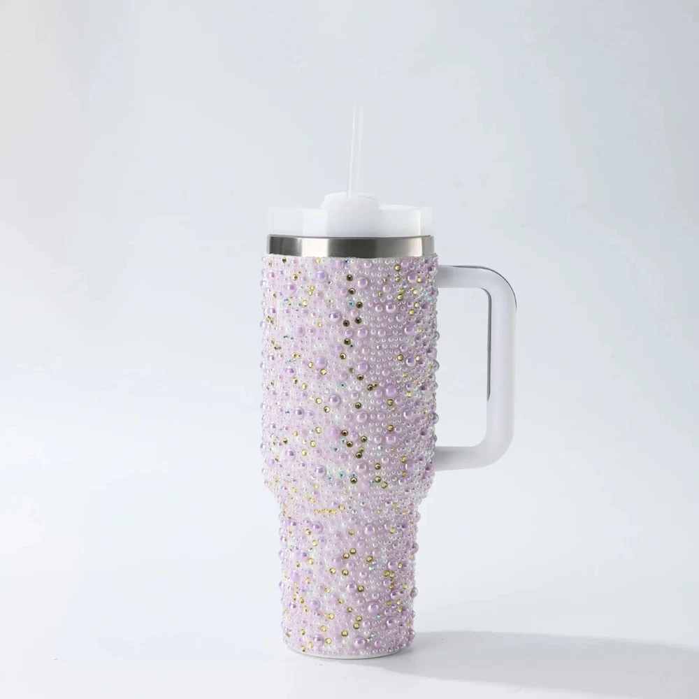 Introducing the Custom 40oz Stainless Steel Diamond Pearl Rhinestone Tumbler – a perfect blend of luxury and functionality. This tumbler features a stunning diamond-encrusted design, adorned with sparkling rhinestones and a lustrous pearl finish, making it the ultimate statement piece for your car or daily adventures. Crafted from durable stainless steel, it ensures superior insulation to keep your drinks hot or cold for hours. With a large 40oz capacity, it's perfect for staying hydrated throughout the day. Whether you're on the go or relaxing, this tumbler adds a touch of elegance to your routine. The exquisite design and attention to detail make it a must-have for those who appreciate both style and practicality. Key Features: Large 40oz Capacity for ample hydration. Diamond and Rhinestone Accents for a luxurious touch. Stainless Steel Construction for durability and insulation. Pearl Finish for a sleek, high-end look. Perfect for On-the-Go – fits in most car cup holders.