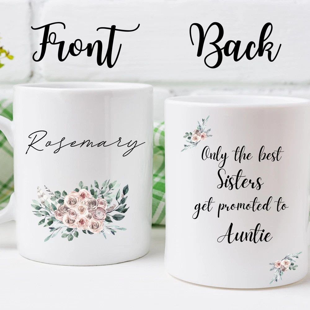 New Aunt Gift Auntie Pregnancy Announcement Gift For New Aunt Personalized Mug Product Details.. This high quality 11oz. ceramic white mug has a premium hard coat that provides crisp and vibrant color reproduction sure to last for years. Perfect for all hot & cold beverages. The highest quality printing possible is used. It will never fade no matter how many times you wash it. Material: 100% Ceramic. Print both sides. Dishwasher and Microwave Safe. High Gloss + Premium White Finish. Printed in the U.S.A. Personalized & Custom. We support personalized and custom mug to add custom, when placing an order, you can add notes to the "order note" in shipping address section. Also you can contact us directly via message. Shipping Info. Ready to ship in 1 to 2 business days, All products are made-to-order and proudly printed in the United States. Shipped by USPS and DHL, You will receive your order in 5-7 days. Replace & Refund. All products are defective during shipping broken, chipped will be replaced free of charge. You are not satisfied with the product, we will refund 100% money to you. If any other issues arise, please do not hesitate to message, we would be more than happy to assist you.