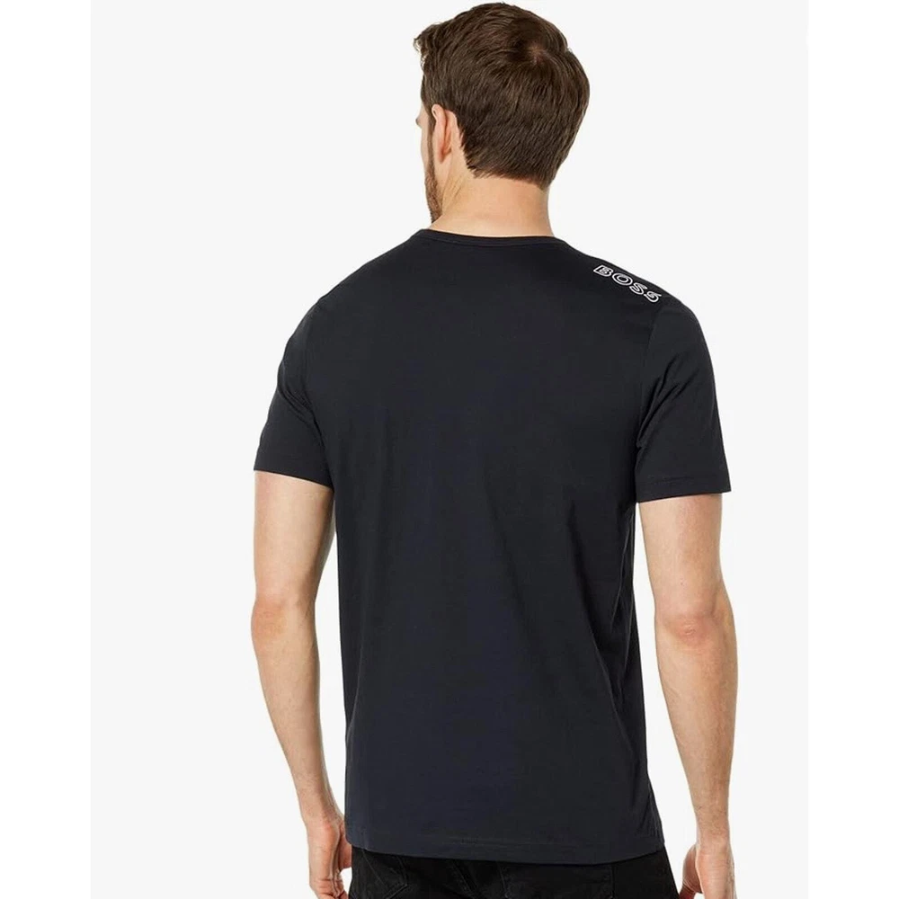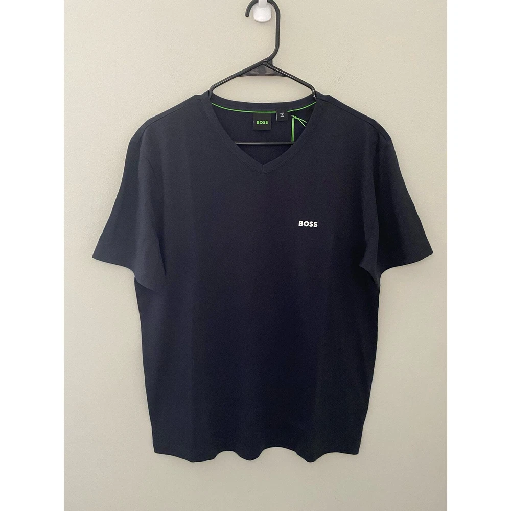 New BOSS Men's Logo Dark Navy V Neck T-Shirt Color: dark Navy, this is almost black but a beautiful Navy color Size Medium