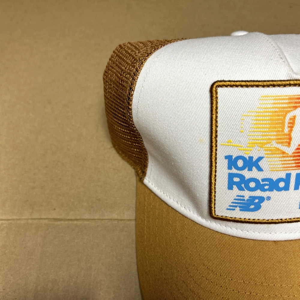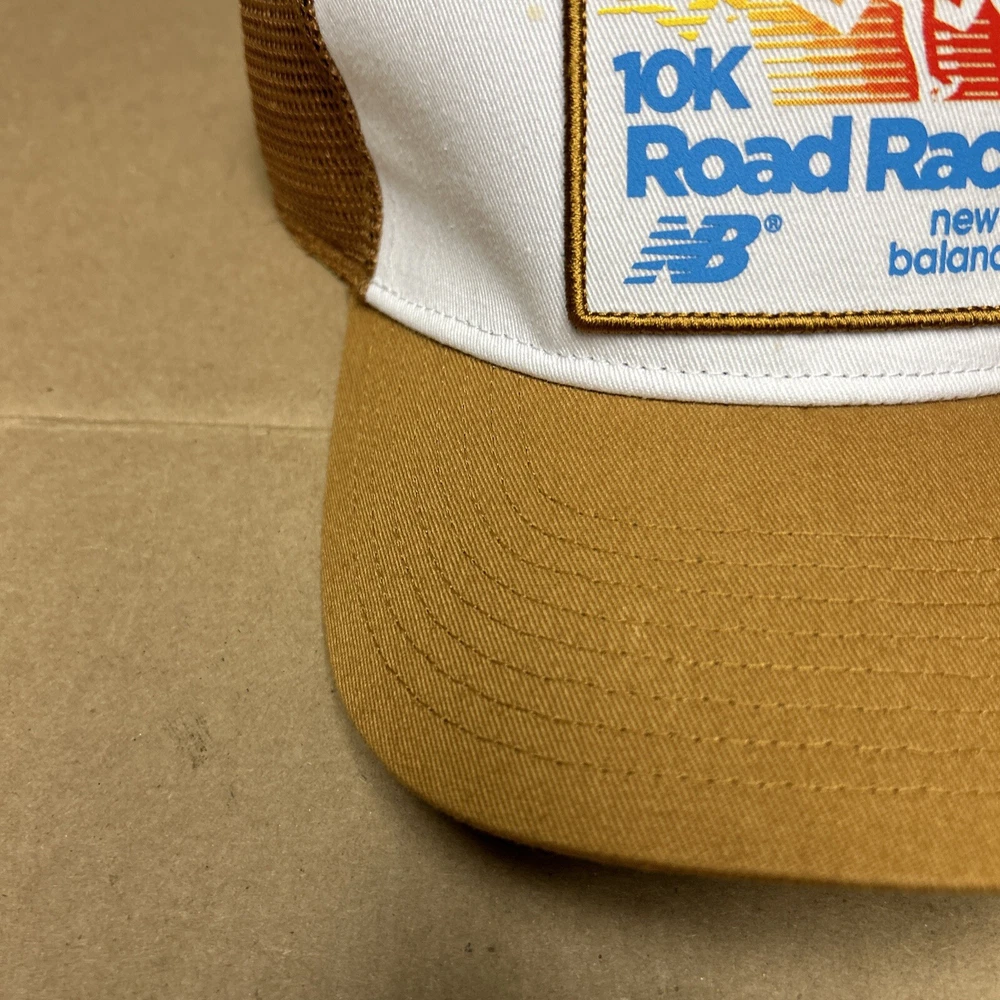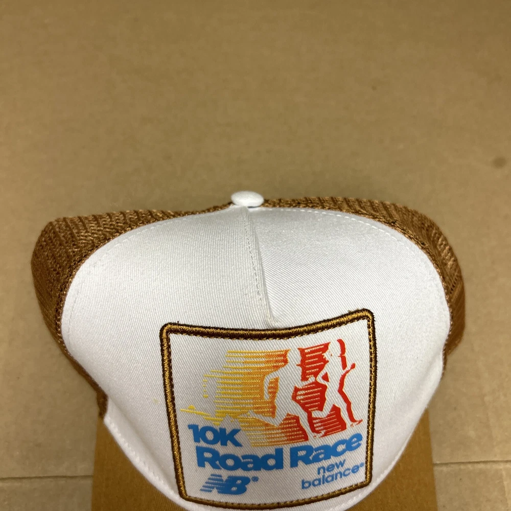 New Balance 10k Road Race Snapback Hat Vintage Rare Trucker Cap Tan & White