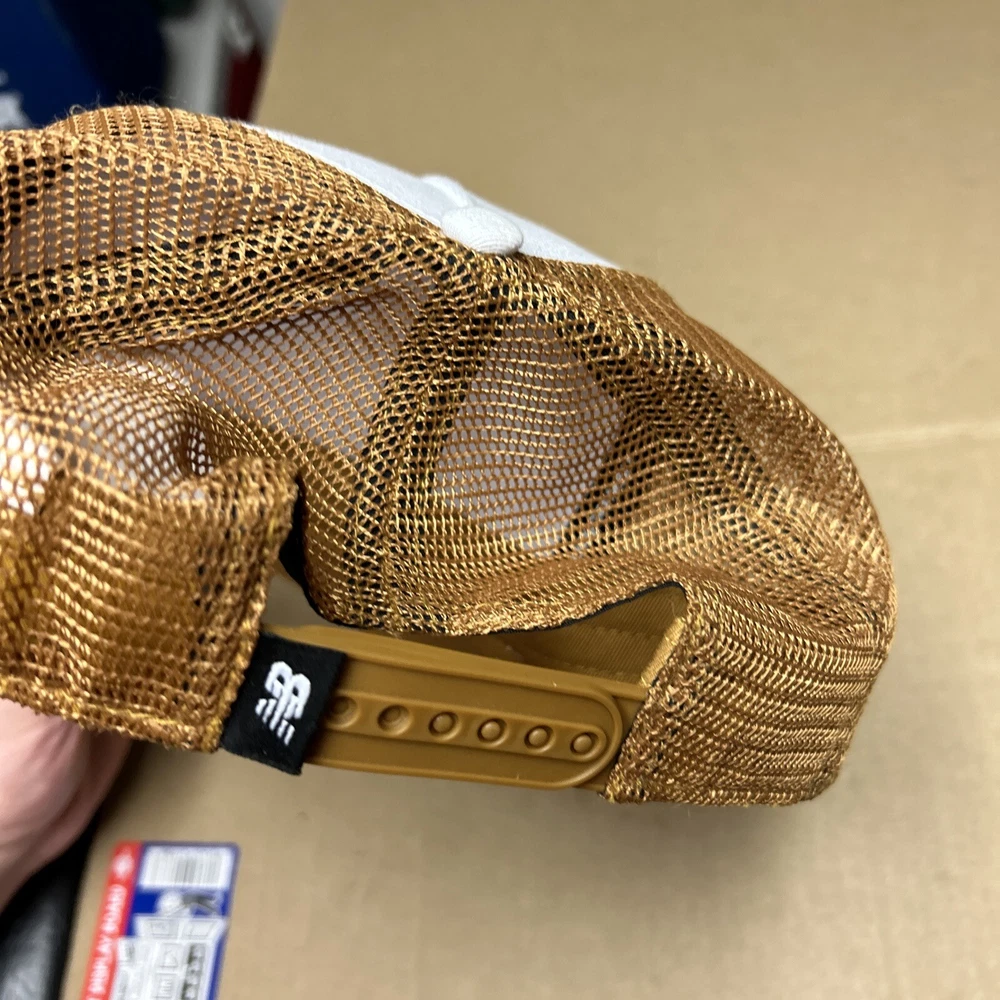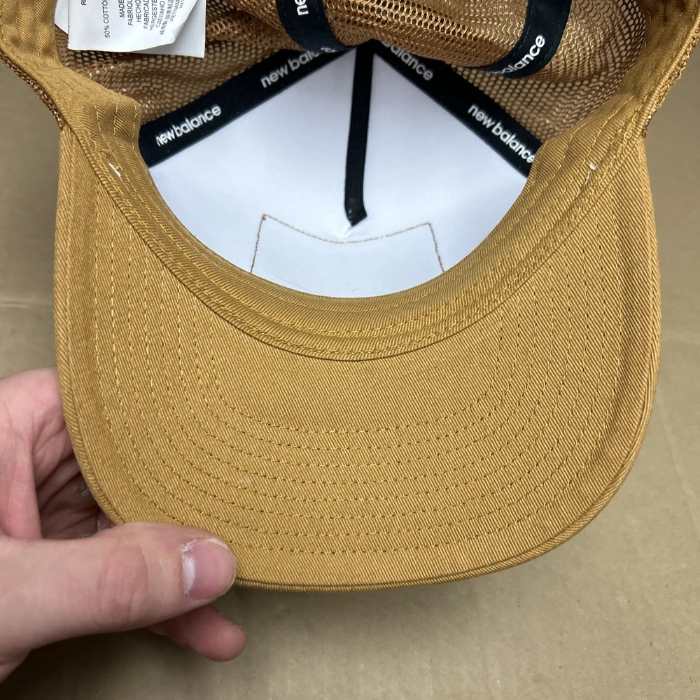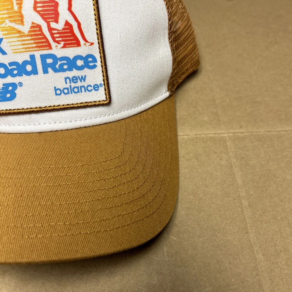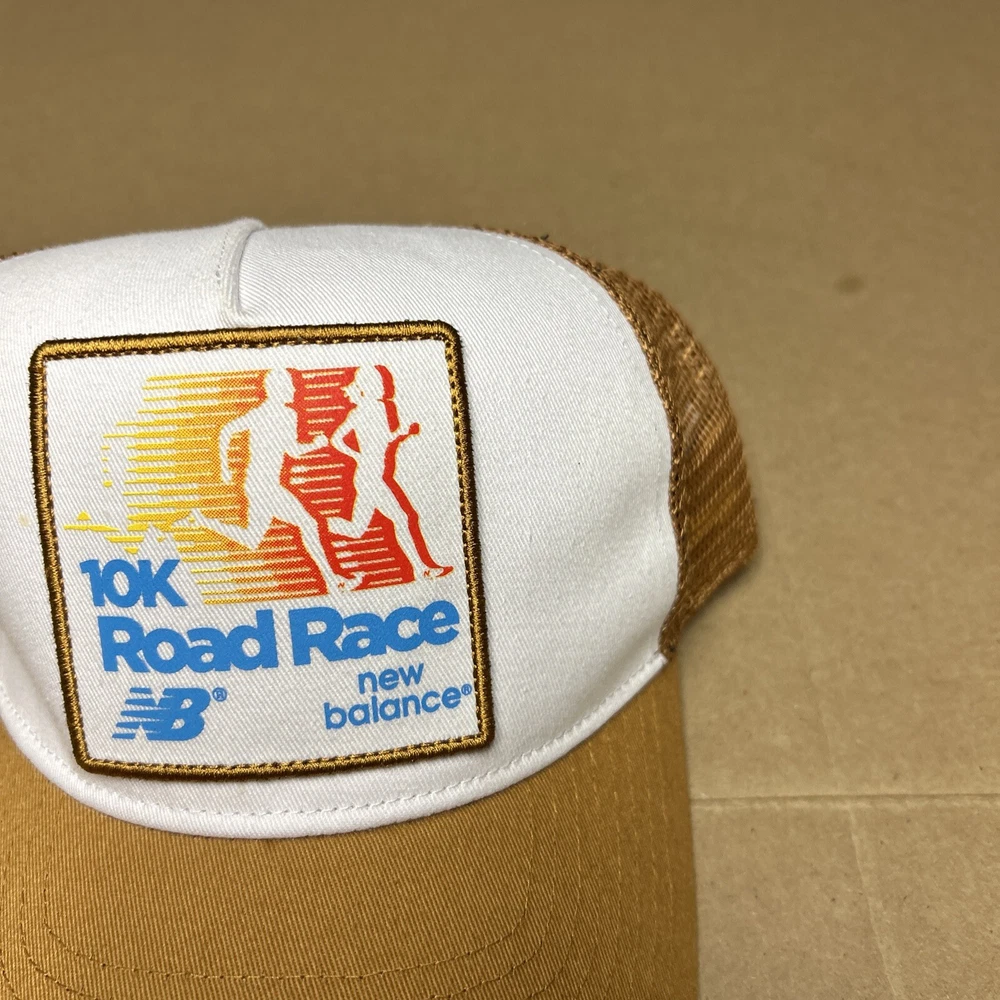 New Balance 10k Road Race Snapback Hat Vintage Rare Trucker Cap Tan & White