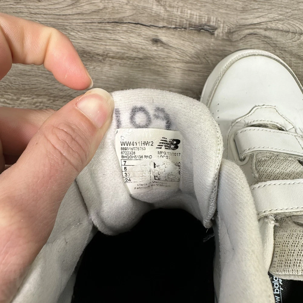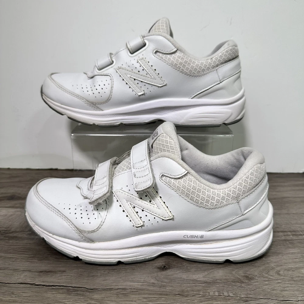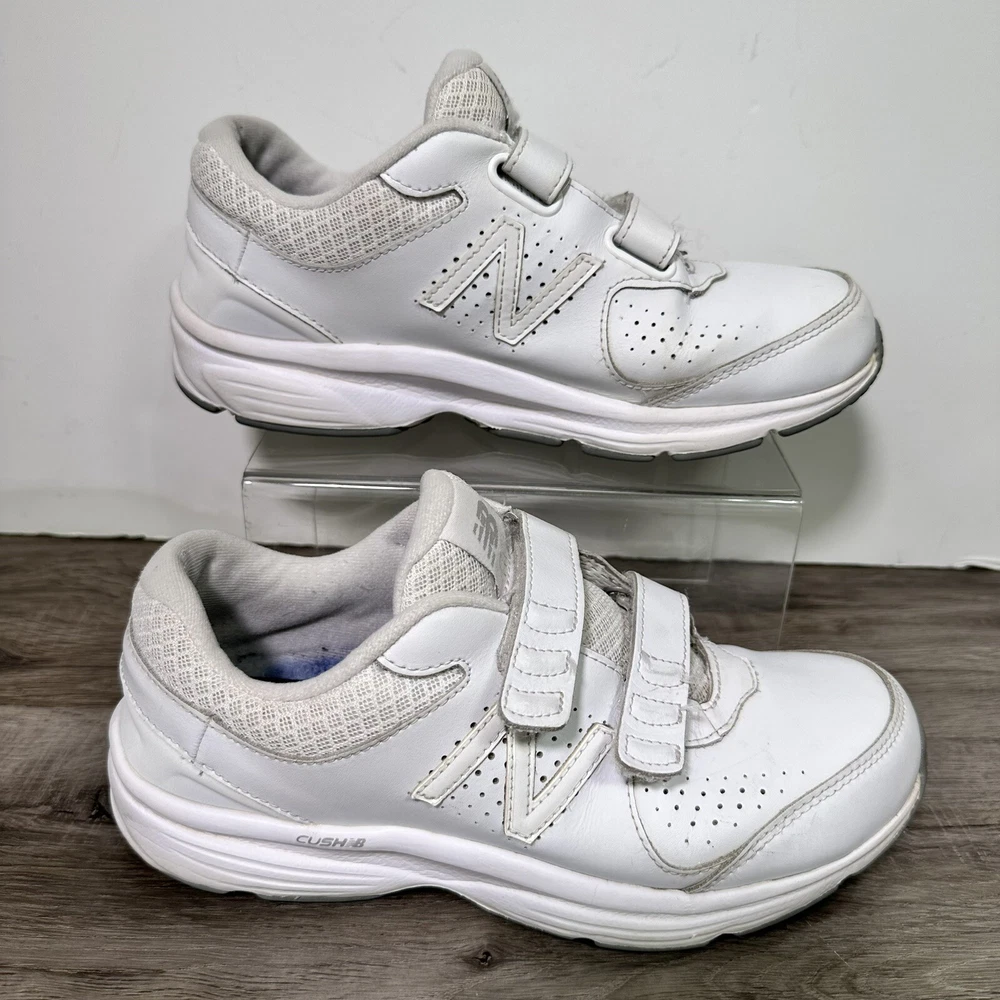 New Balance 411 v2 Leather Hook & Loop Walking Sneakers WW411HW2 Women's 7 White. In used condition please see pictures for details.