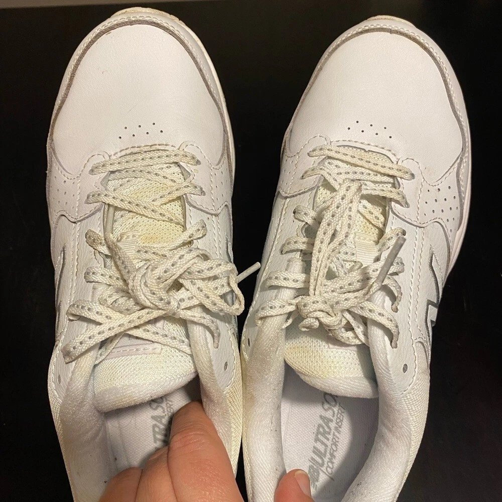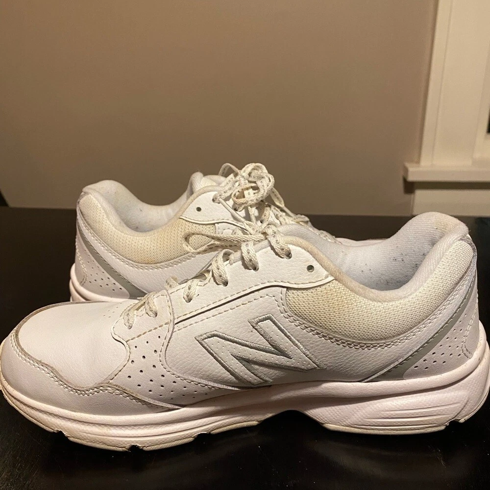 Color:WhiteProduct Line:New Balance 400 SeriesTheme:AthleisureUS Shoe Size:8Style:SneakerBrand:New BalanceUpper Material:LeatherType:AthleticStyle Code:Wa411lw1Seller Notes:“slight discoloration on the tongue and around ankle area of the shoe - see pictures”Model:New Balance 411Department:Women