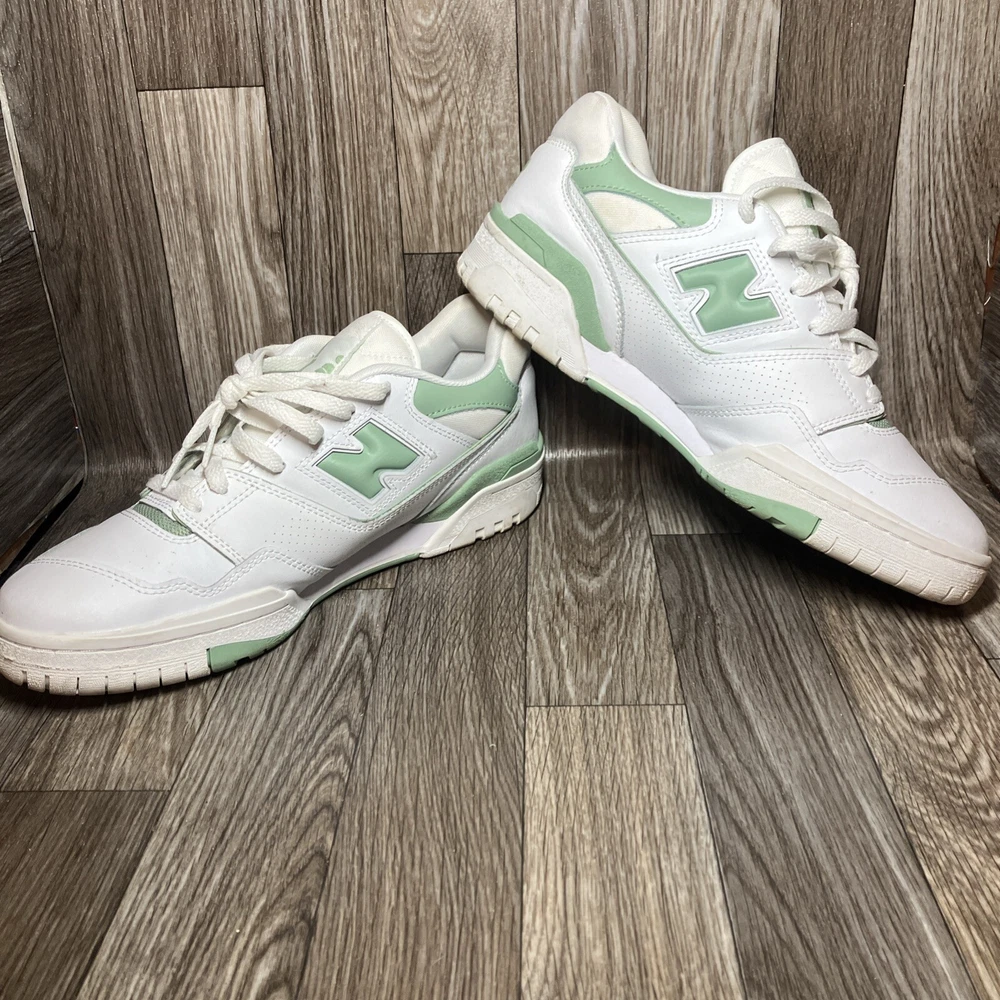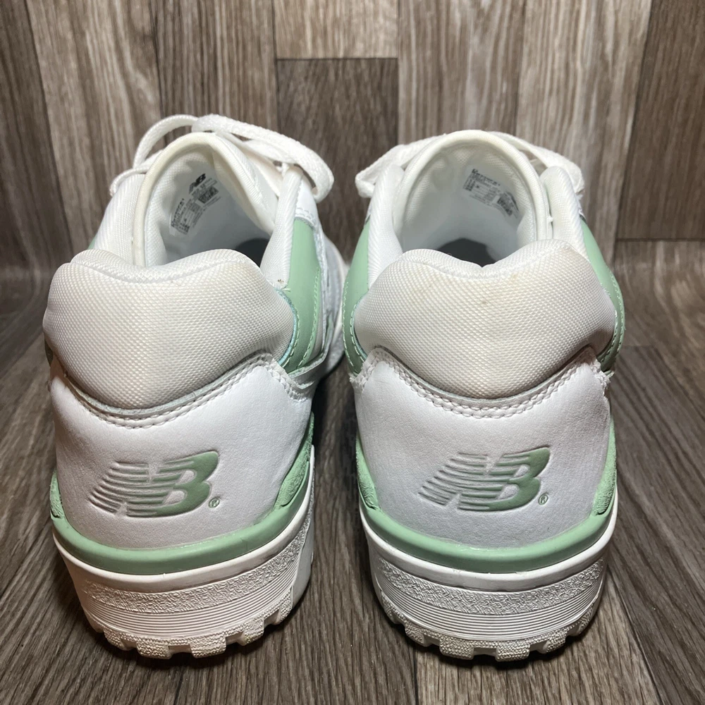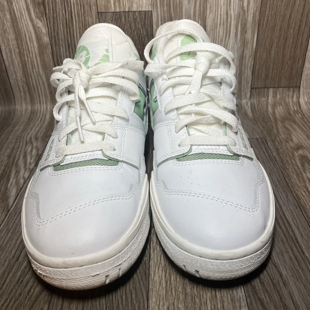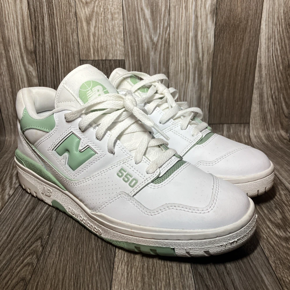 These New Balance 550 sneakers in white and mint green are a perfect addition to your shoe collection. Designed for men, these athletic shoes have a lace-up closure and a low-top shaft style. The cushioned and comfortable features make them suitable for various occasions, including activewear, casual, and workwear. These sneakers have a style code of BB550FS1 and were manufactured in Vietnam in 2022. They are perfect for walking, school, running, and jogging. The upper material is made of leather, and the shoes are available in size 11 with a D width. The nickname of these sneakers is "White Mint Green," and they are part of the New Balance 550 product line.
