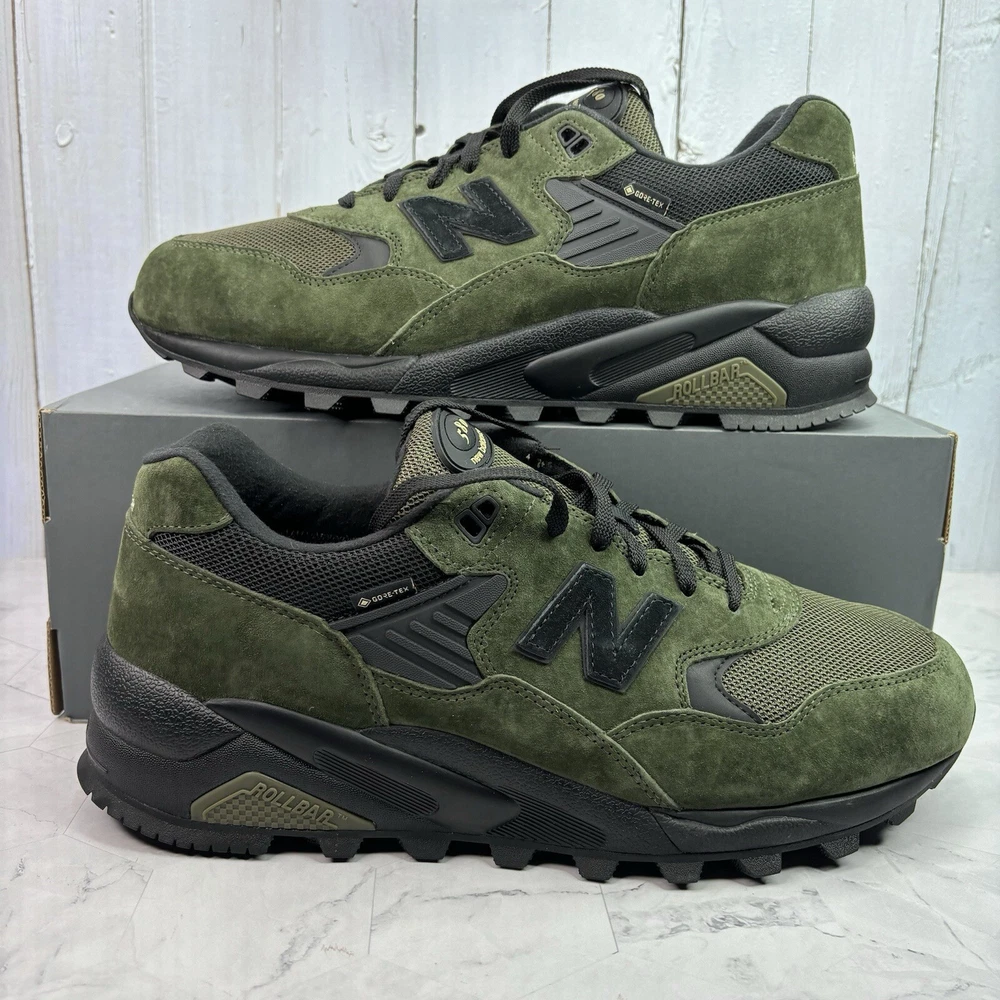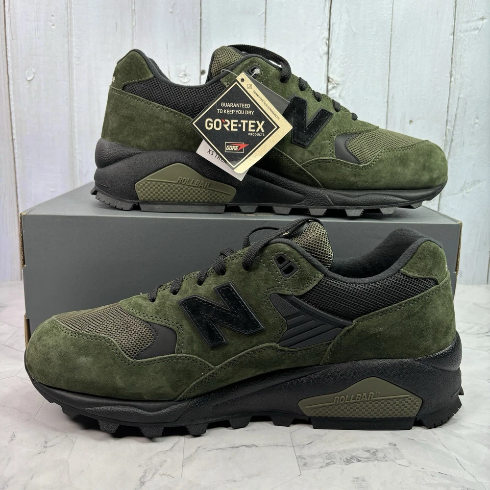 Box is missing lid. Some minor marks on upper nothing major New Balance 580 Gore-Tex Kombu Black Mens Sz 8 Olive Green Black MT580RBL No Lid