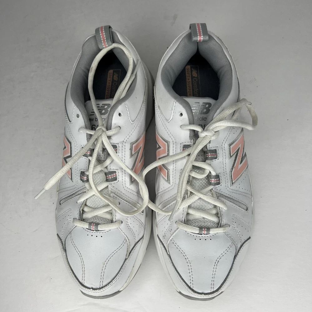 Brand: New Balance Features: Lace-Up Style Code: WX608WP5 Lining Material: Synthetic Upper Material: Leather Heel Height: Low (3/4 in. to 1 1/2 in.) Department: Women Pattern: Solid Model: New Balance 608 Shoe Width: Standard Style: Leather/Manmade Training Sneakers Modified Item: No Outsole Material: Rubber UPC: Does Not Apply Insole Material: Foam Accents: Logo Shoe Shaft Style: Low Top Performance/Activity: Cross Training Color: White, Pink Customized: No Product Line: New Balance 600 Series Type: Athletic Closure: Lace Up Season: Fall, Spring, Summer, Winter gtin13: Does Not Apply US Shoe Size: 10