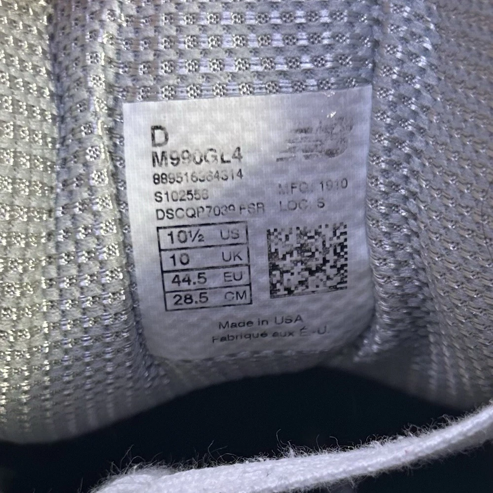 Preowned Great Condition, With Original Box and Receipt, Cleaned and Deodorized, New Balance 990v4 Athletic Sneakers Gray M990GL4 USA Made Shoes Mens Size 10.5 D (Standard Width) or Women’s Size 12 (Wide Width for Women). Suede on Uppers have been brushed and reset, some wear on tread soles (pictured), light scuffs on midsoles. The item pictured is exactly the item and condition you will receive it in. I always carefully package and immediately ship all orders. Please check out my other listings as you will always receive a discount if you bundle items + save on shipping. Message me with any questions.