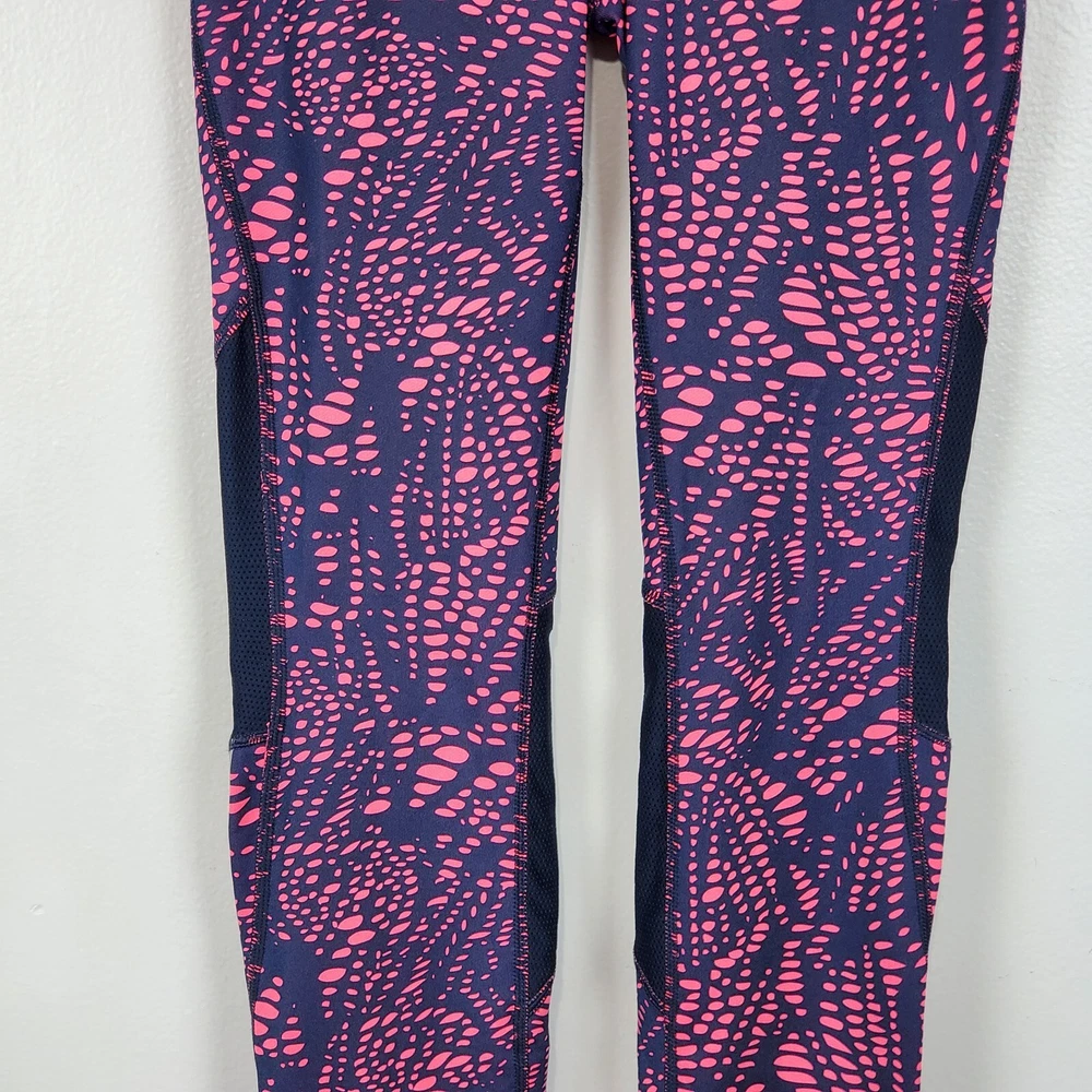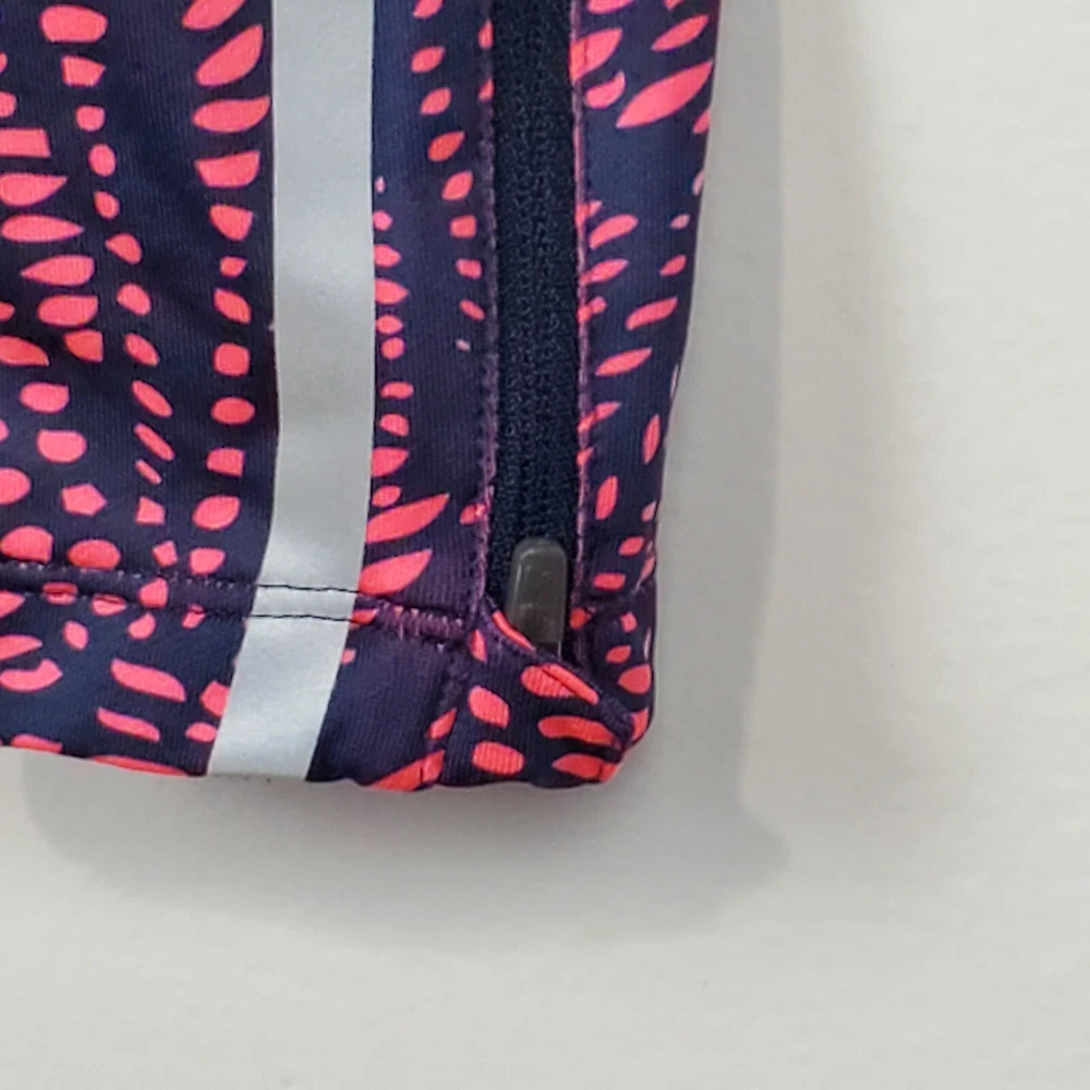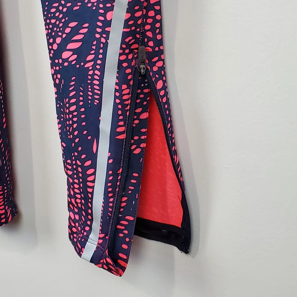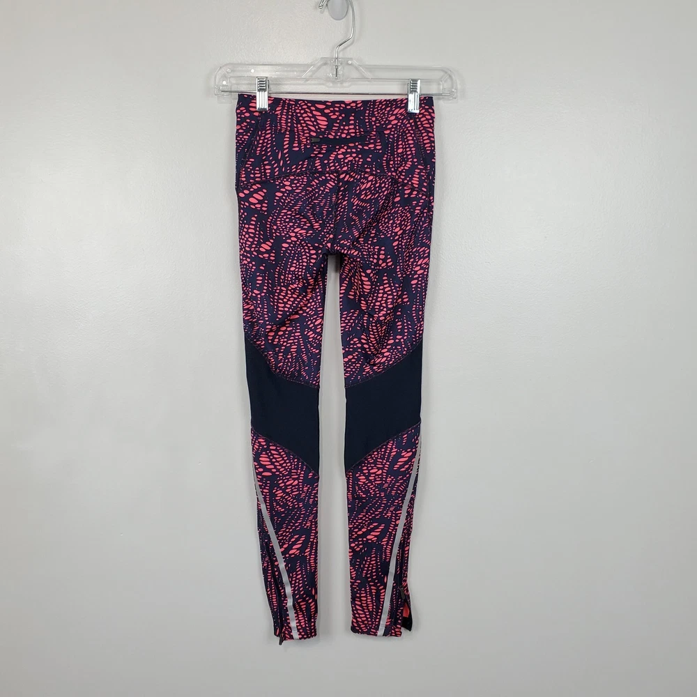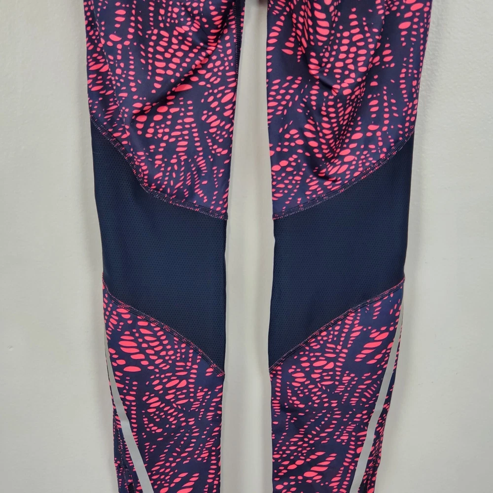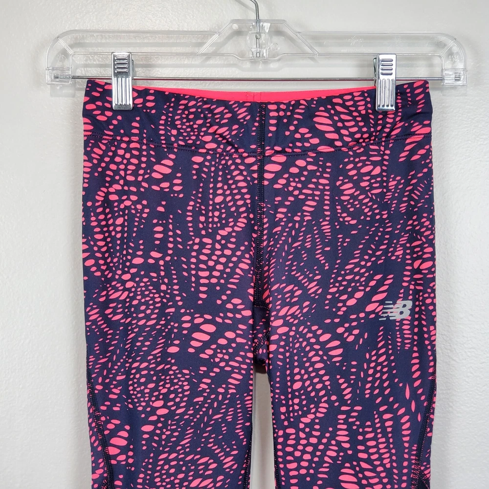 New Balance Activewear Athletic Reflective Running Strips Legging Size Extra Small Navy, pink with back leg reflective strips Wide flat elastic waistband with inside drawstring Ankle zipper Back zipper pocket Perforated leg panels Running Activewear Athletic wear Fitness wear Exercise wear Notice: Color may differ from your computer, phone or device display Relaxed flat lay measurements are approximate, fit not guaranteed. Waist front side to side: 11 1/2" Inseam: 27" Y1402B M60723 9106 **5.7oz** 90424
