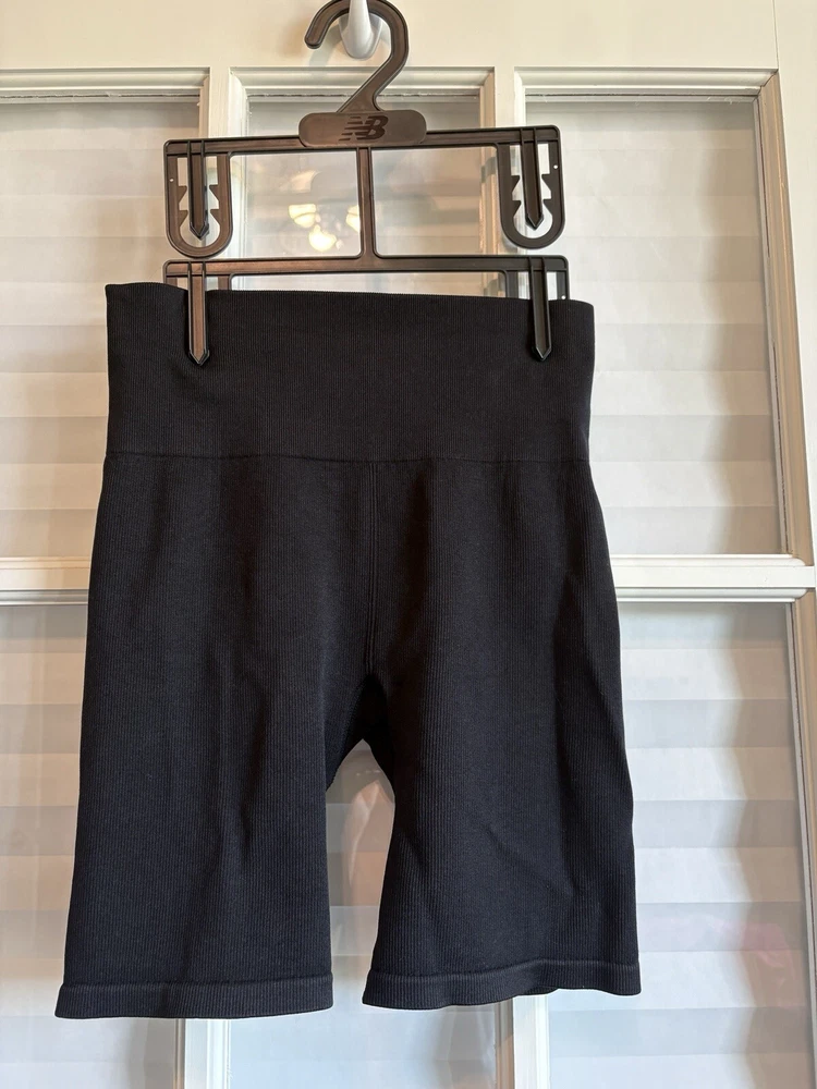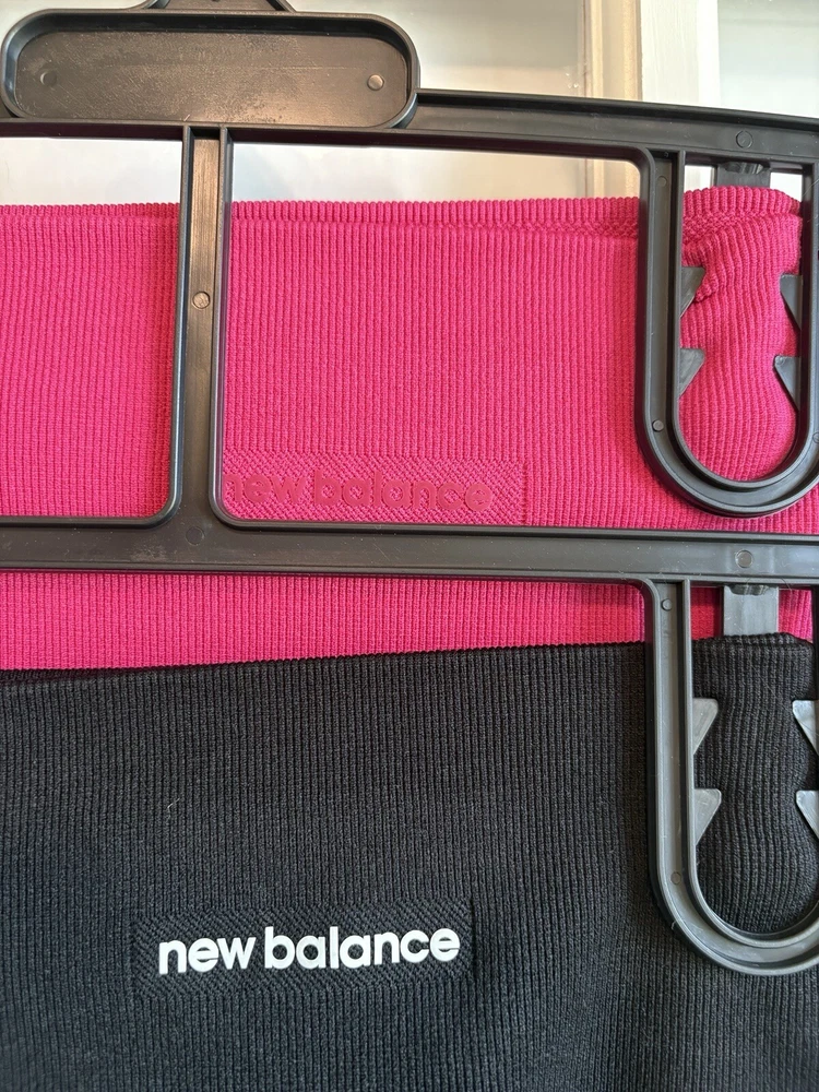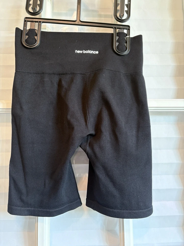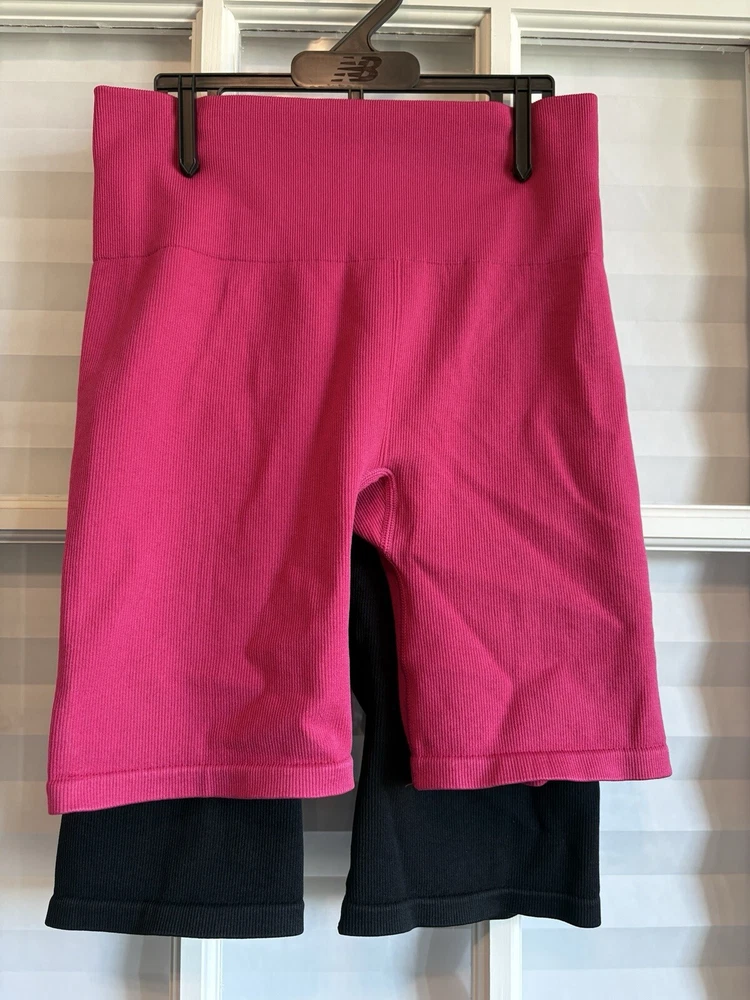This is a women's biker short set by New Balance, designed for activewear. The set includes biker shorts in a size small. Set of two items total one is black and one is pink.