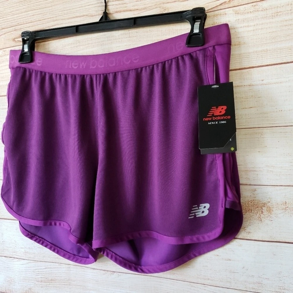 New with tags New Balance Fast Drying Women's Sports/Workout Shorts Side pockets Color: plum/purple Moisture wicking Fast drying Approximate measurements laying flat: Waist (elasticated): 17" - 23" Inseam: 4" Rise: 10" Leg opening: 13 1/2" From a smoke free/pet free clean environment New Balance Fast Drying Women's Sports/Workout Shorts