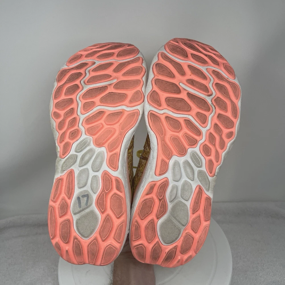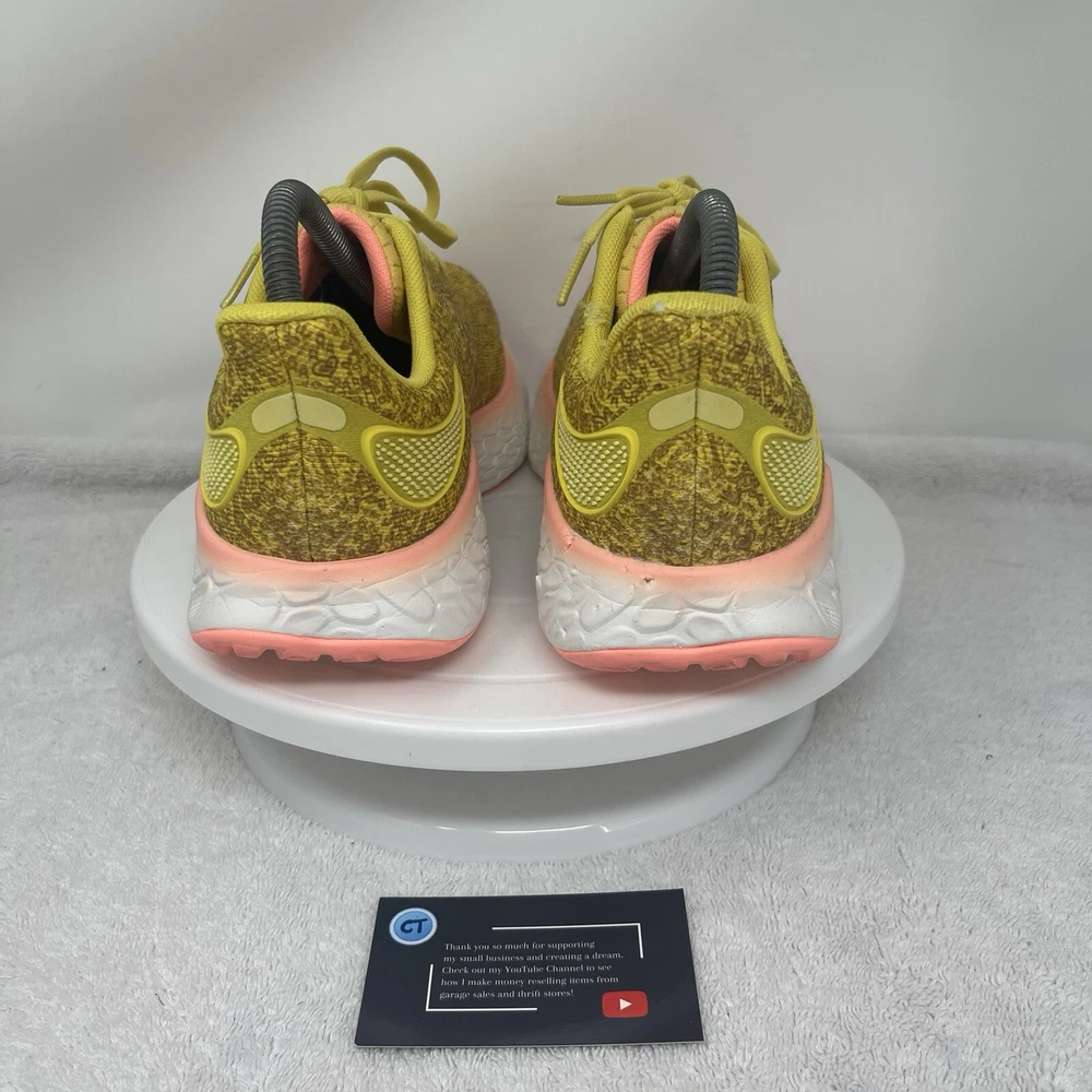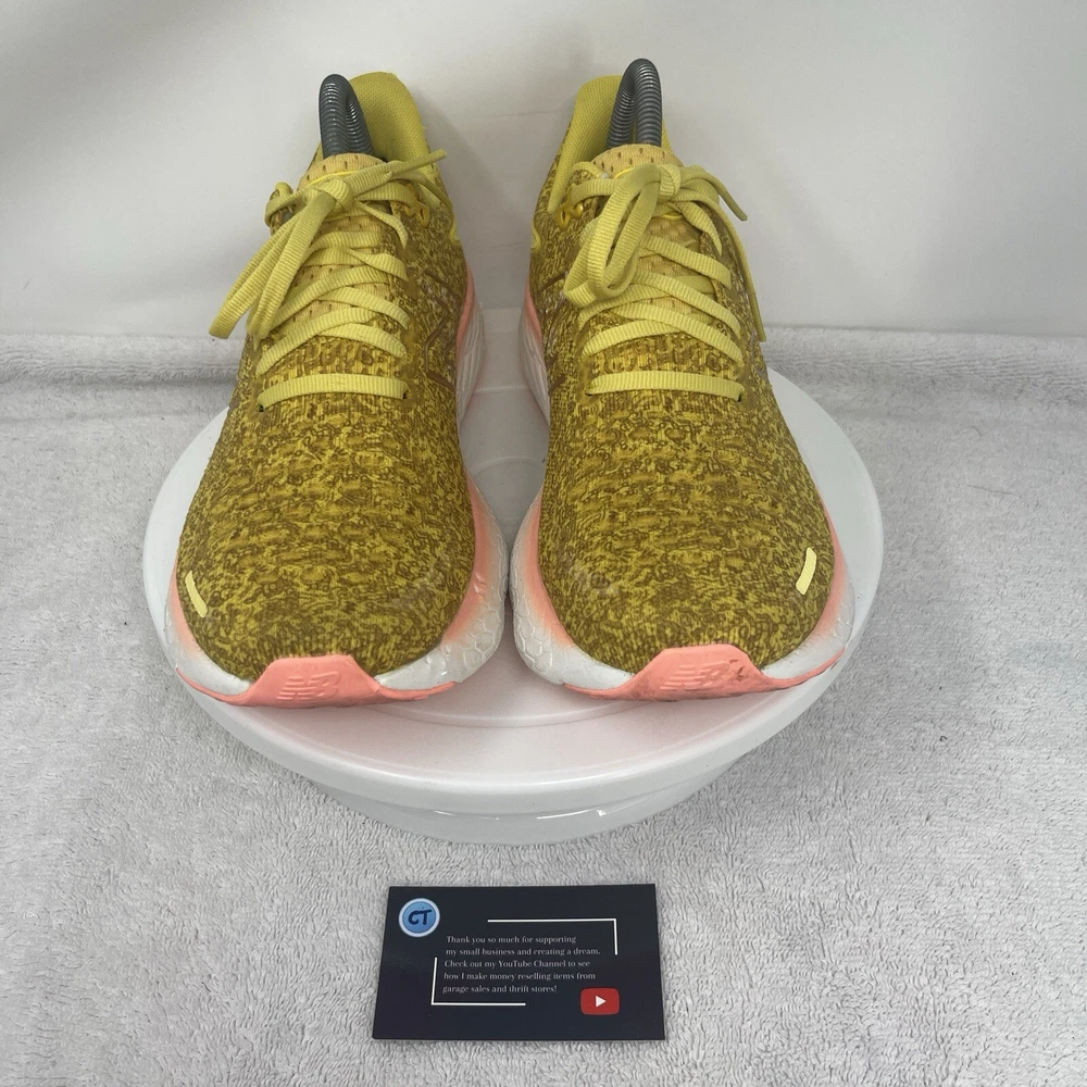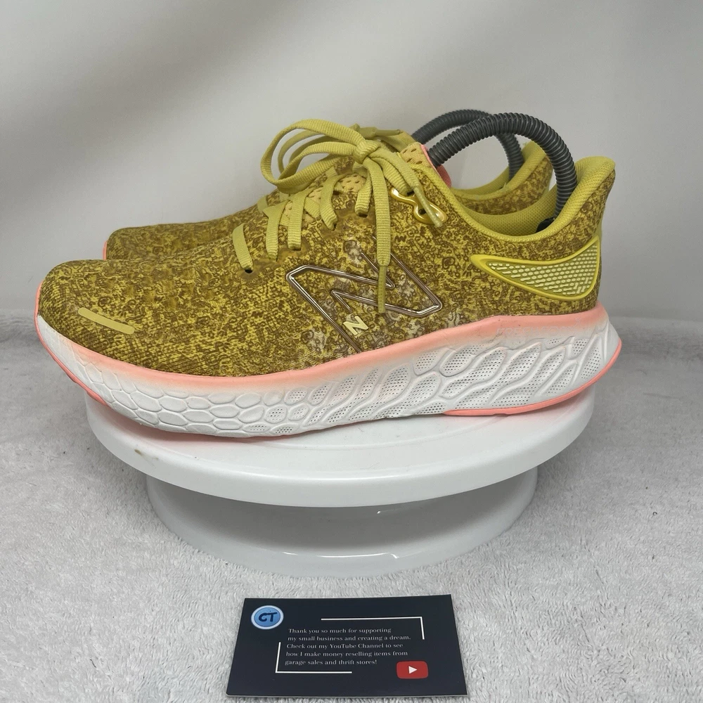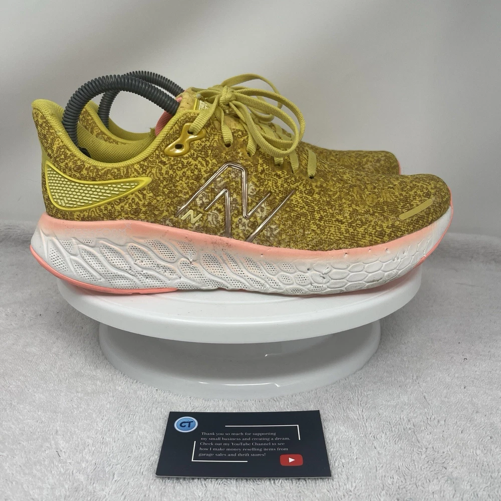 Elevate your activewear game with these New Balance Fresh Foam X 1080 V12 Women's Sneakers. These lace-up shoes are perfect for gym and training, walking, and running and jogging. The breathable mesh upper material and cushioned insole material provide comfort and support, while the rubber outsole material ensures durability and traction. The solid yellow color with embroidered logo accents and low-top shoe shaft style adds a pop of color to your athleisure wardrobe. These sneakers are part of the New Balance 1000 Series and are equipped with performance-enhancing features such as a B shoe width and foam lining material. Get ready to step up your sports game with these stylish and functional sneakers.