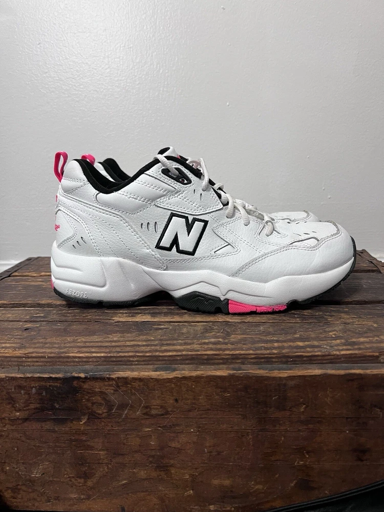 New Balance NB 608 Sneaker Womens White Pink Casual Comfort 11 M Athletic Tennis shoes Looks like they were worn maybe part of one day! Almost new!
