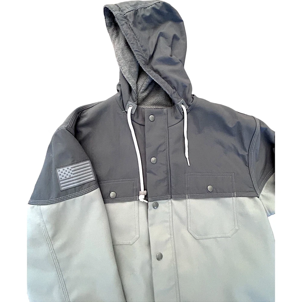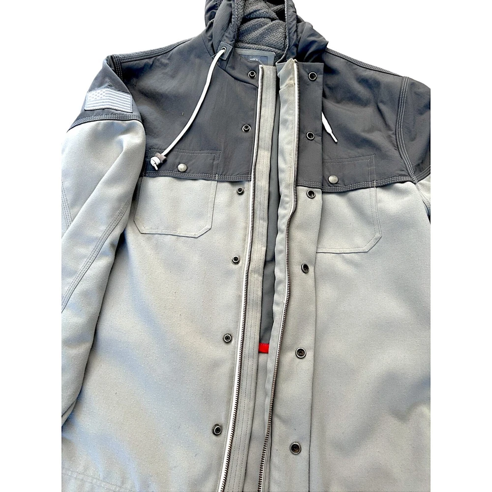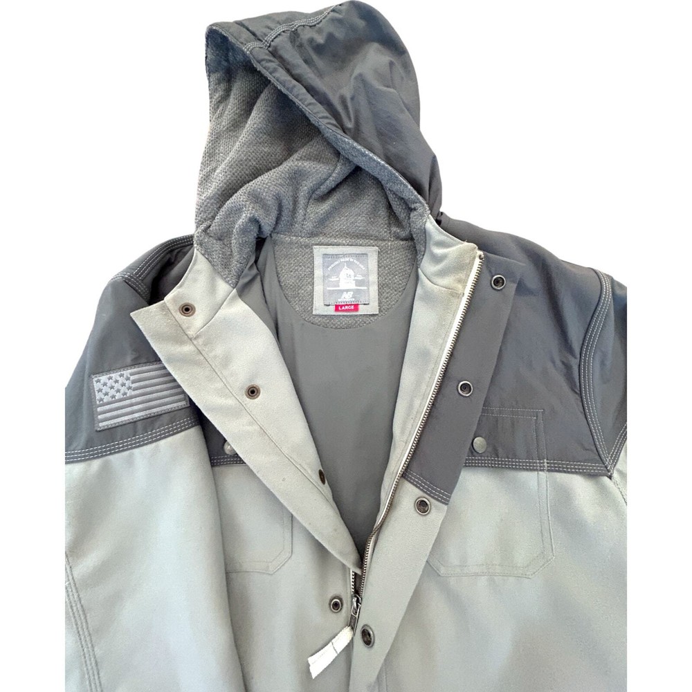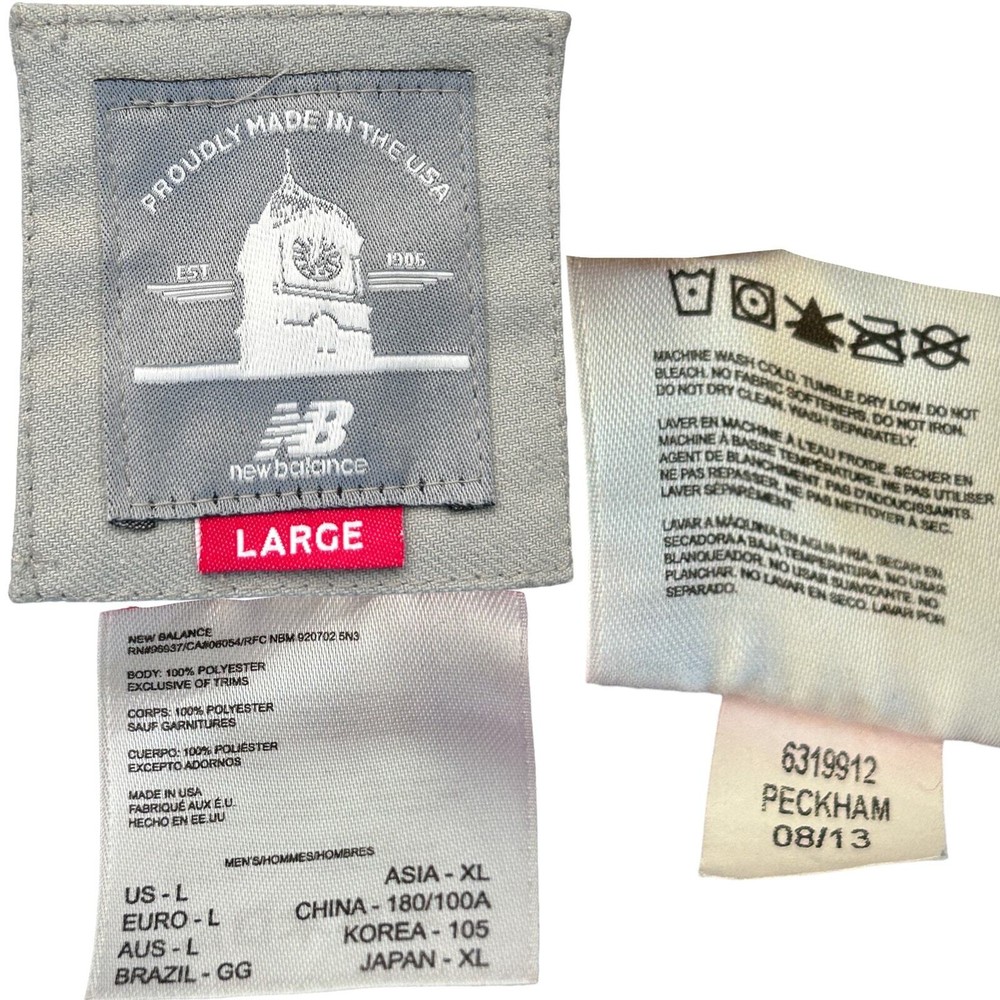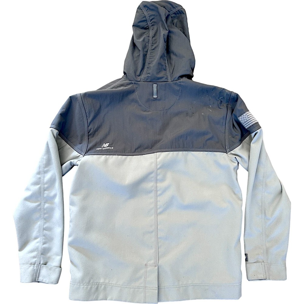 New Balance NB990 Heritage Pinnacle Gray Men's Large Jacket Coat w/ Hood 💰 Retail Price: $250.00 🎨 Color: Athletic Grey, two tone ®️ Model: 3190 💎 Brand: New Balance 📐 Size: Men's Large. Relaxed Fit. 24" armpit→armpit 29.5" shoulder→hem 28" sleeve length 🧶 Material: 100% Polyester 📎 Features: Full Zipper & Button closure, Suede drawstring toggles, Grey & White USA flag patch accent stitched on upper arm, soft knit mesh-lined hood with drawing cord, reflective NB logo on the back shoulder for low-light safety. Two side zip plackets + two chest pockets + one inner pocket. 📍 Made in: U.S.A. ⚖️ Condition: Jacket is great condition with some general wear. Pictures reflect some staining from tree sap on hood/shoulder. Stored & worn in non-smoking household. See photos for details. 💰 Price: Will discount for multiple items. Make an offer. 📦 Shipping: Will bundle multiple items for cheaper shipping. Will accept local pickup. 📸 More photos available upon request
