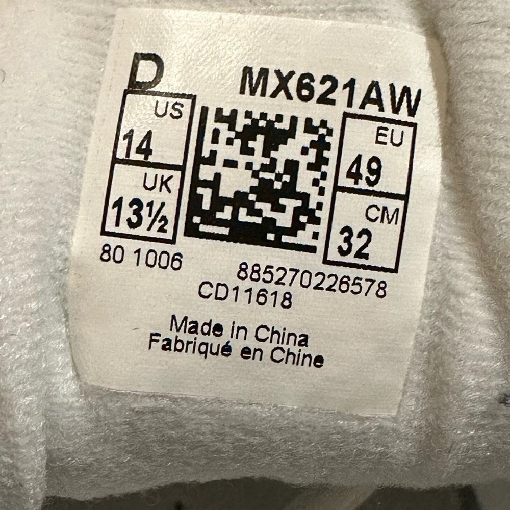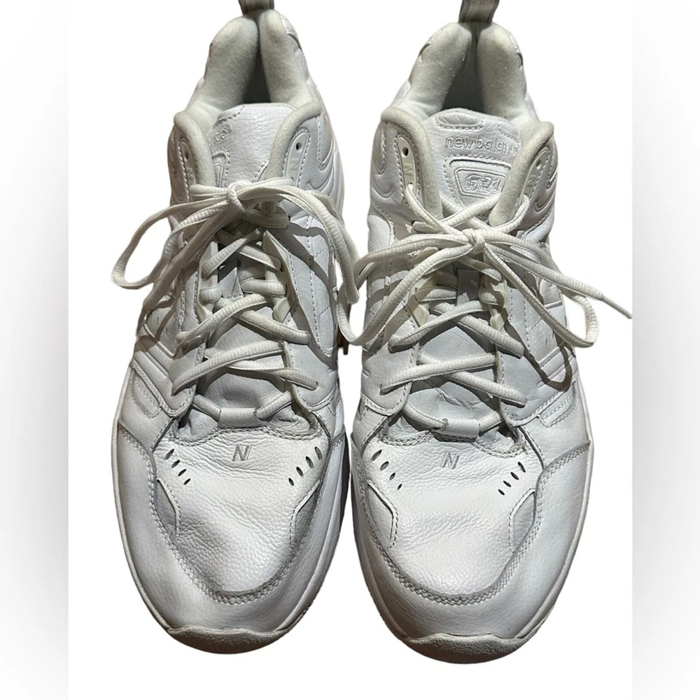 This is a super nice pair of men’s size 14, 621 sneakers by New Balance. White leather sneakers are in excellent gently used condition.