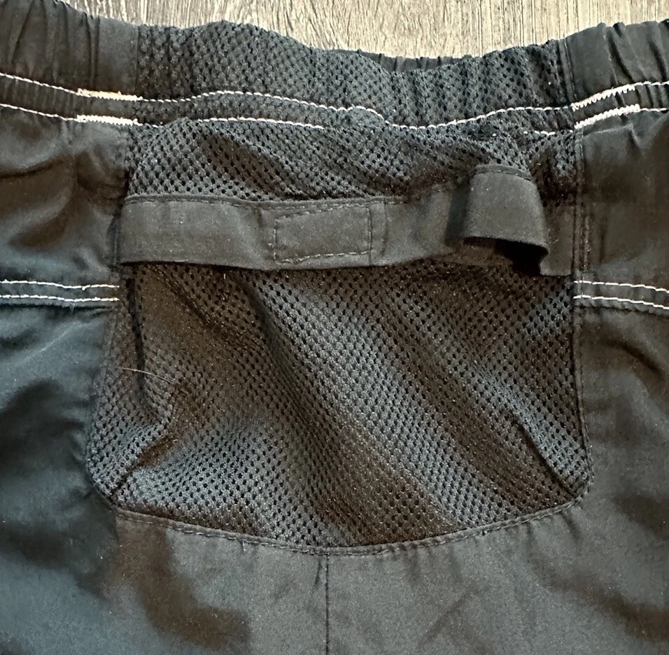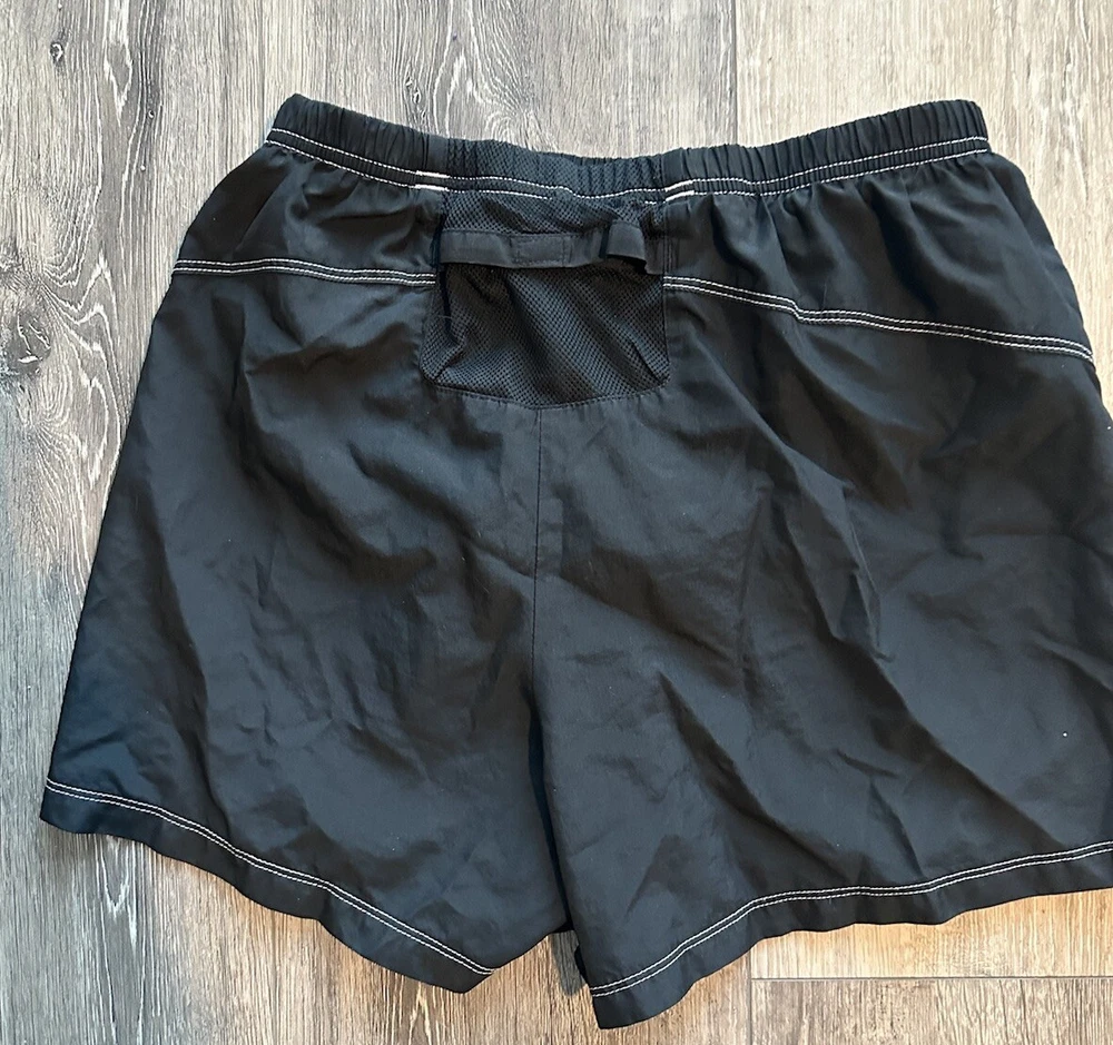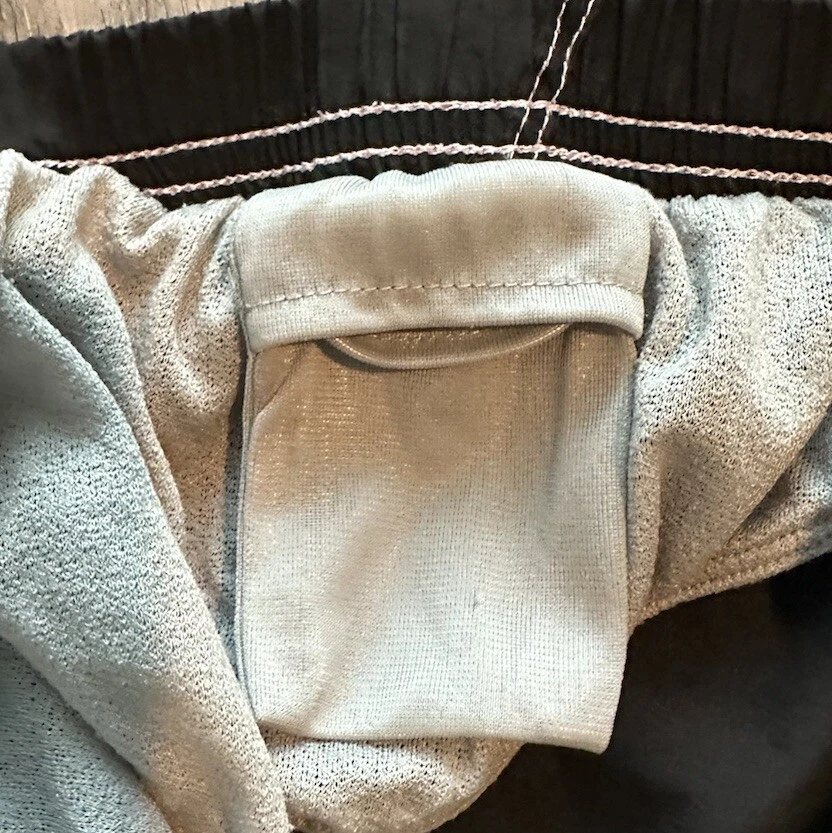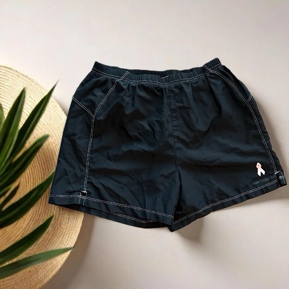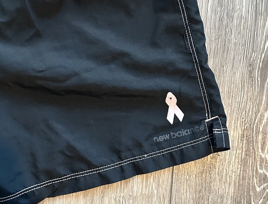 These black New Balance shorts are perfect for any active woman. With an elastic waist and relaxed fit, they are comfortable and easy to wear for a variety of activities, from running and jogging to weightlifting and cross training. They are also machine washable, making them a convenient addition to any wardrobe. These shorts are part of the Breast Cancer Awareness collection, featuring a lined design and made of blended fabric. They have a 3.5 inch inseam and are size M, with a 28 inch waist. Whether you're hitting the gym or going for a walk, these shorts are a great choice. There is a small pocket inside. Perfect for a key. Also, a Velcro closure pocket in back that is great for cash.