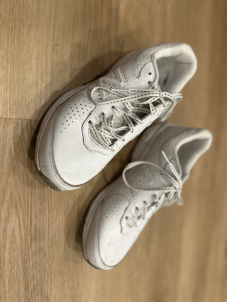 Embrace everyday comfort and style with these New Balance Women's Athletic Sneakers. Designed for versatility, these size 9 white sneakers feature a low-top shaft and a durable synthetic/textile upper, ensuring a breathable fit that's perfect for any casual or activewear occasion. The cushioned insole and supportive rubber cleats provide excellent traction and comfort for activities like walking, tennis, or CrossFit. These New Balance 411 models integrate athleisure seamlessly into your wardrobe with their sleek lace-up design and solid white color. The shoes are equipped with all-day ease features, including a comfortable standard shoe width and a soft synthetic lining. Whether you're hitting the pavement or the classroom, these sneakers are crafted to keep your feet supported and stylish throughout all seasons.