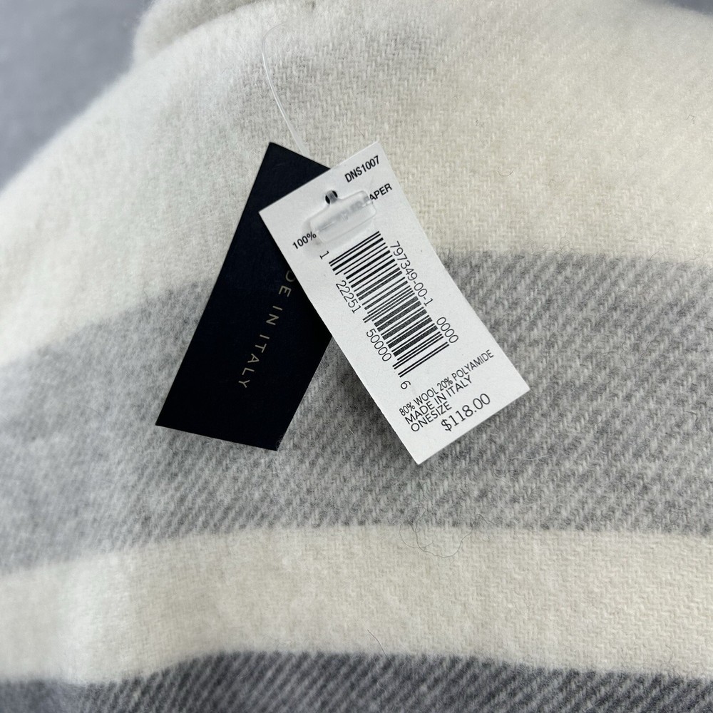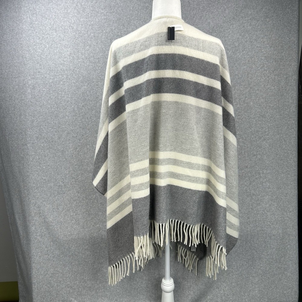 New Banana Republic Striped Wool Blend Fringe Poncho in Ivory Gray Made in Italy $118