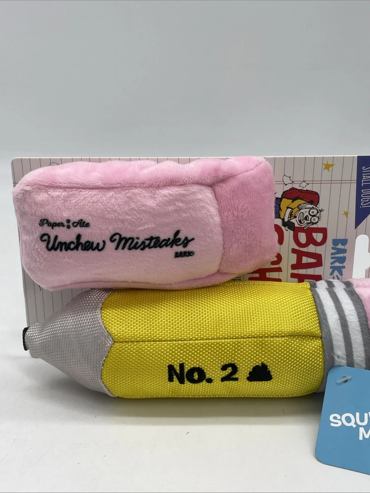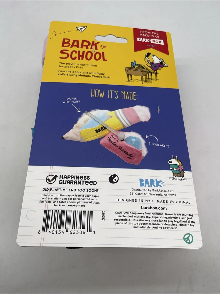 New Bark Box Rare HTF " Multiple Chews Test " Dog Toy Pencil & Eraser. Condition is New. Shipped with USPS Ground Advantage.