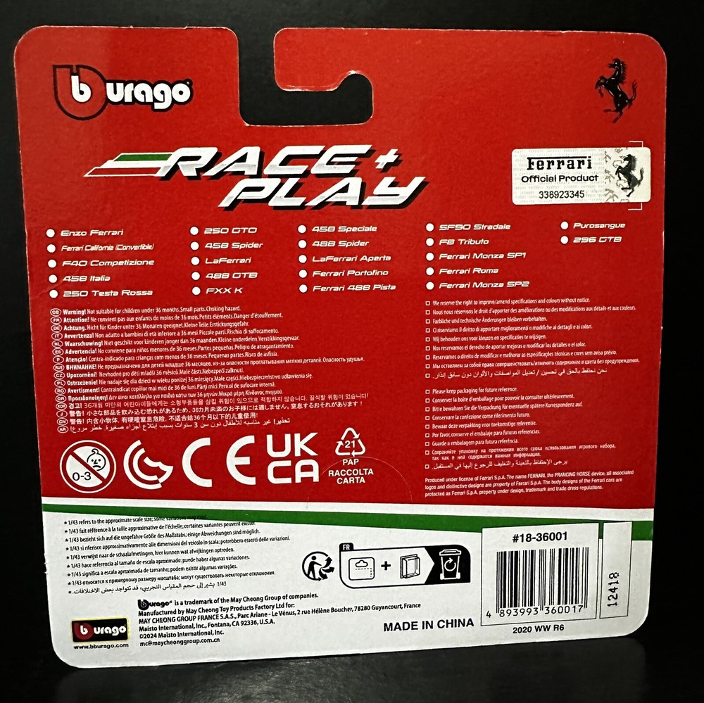 Introducing the Bburago Race+Play Red Ferrari 458 Spider 1:43 Scale diecast car, perfect for boys and girls aged 12 and above. This limited edition car is part of the Bburago Gold series and comes in an unopened box. Featuring the iconic Ferrari 458 Spider model, this diecast car is a must-have for fans of The Italian Job theme. Made with high-quality materials and manufactured in China, this car is a great addition to any collection. Get your hands on this exclusive Bburago Race+Play car today!