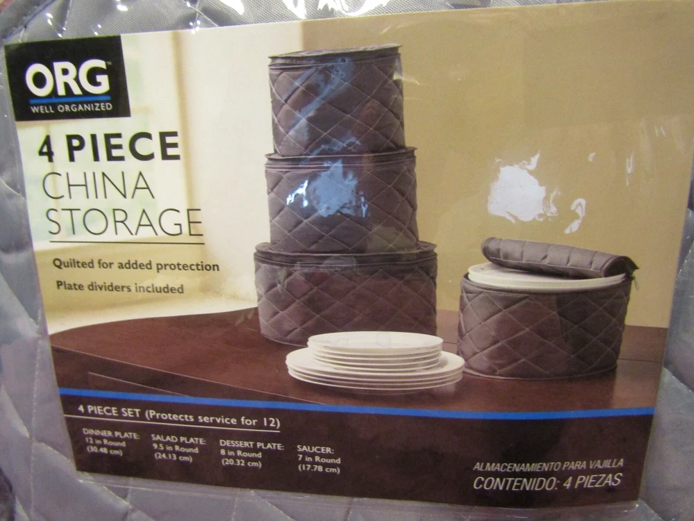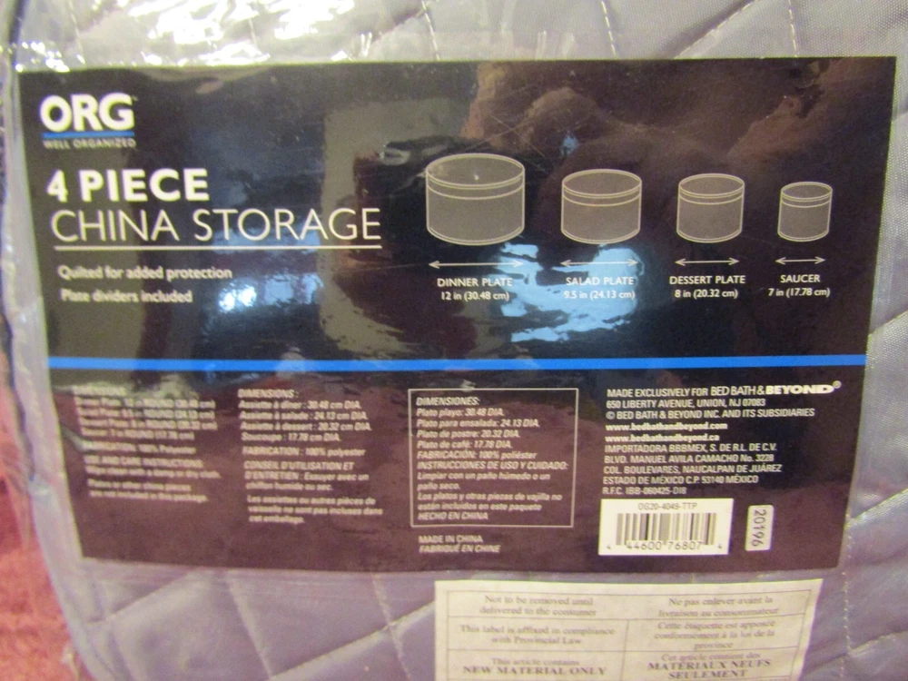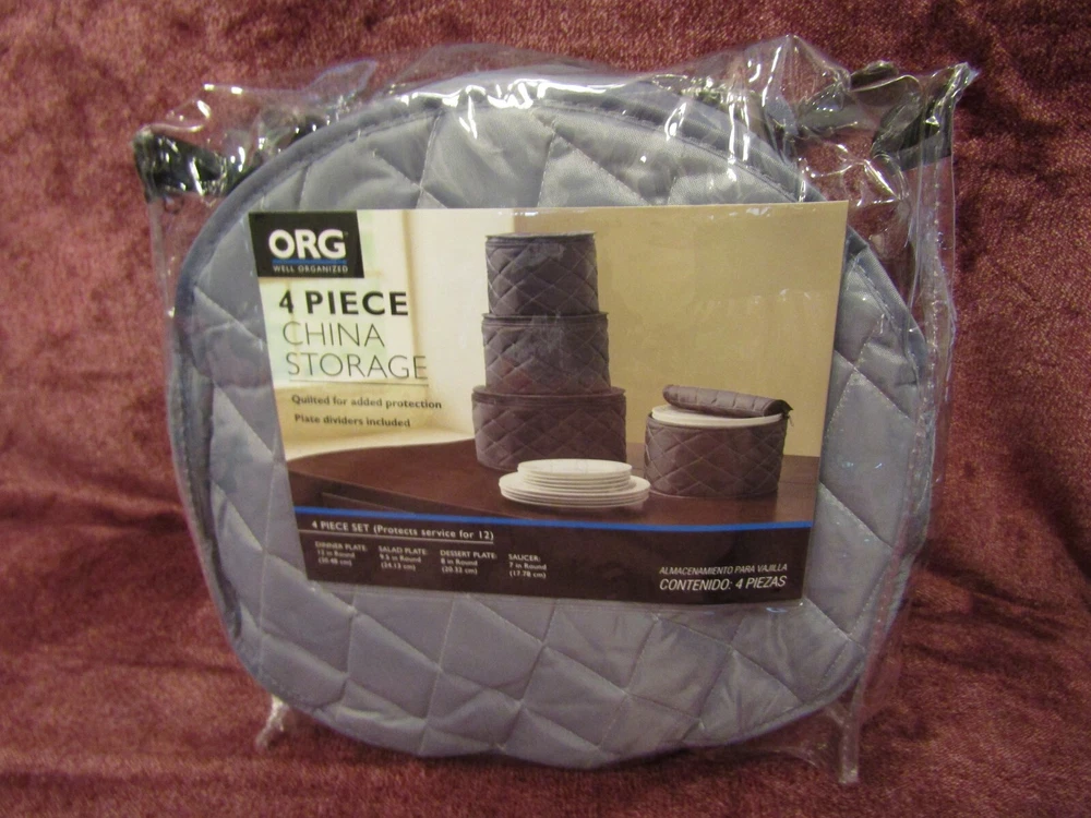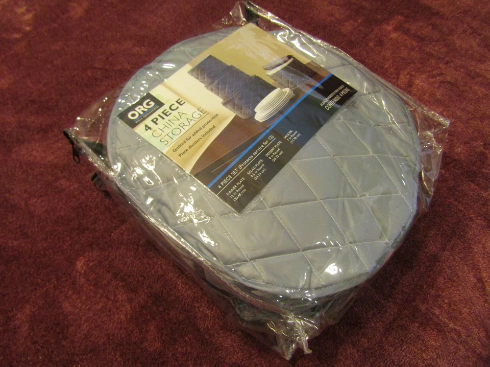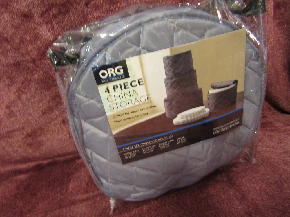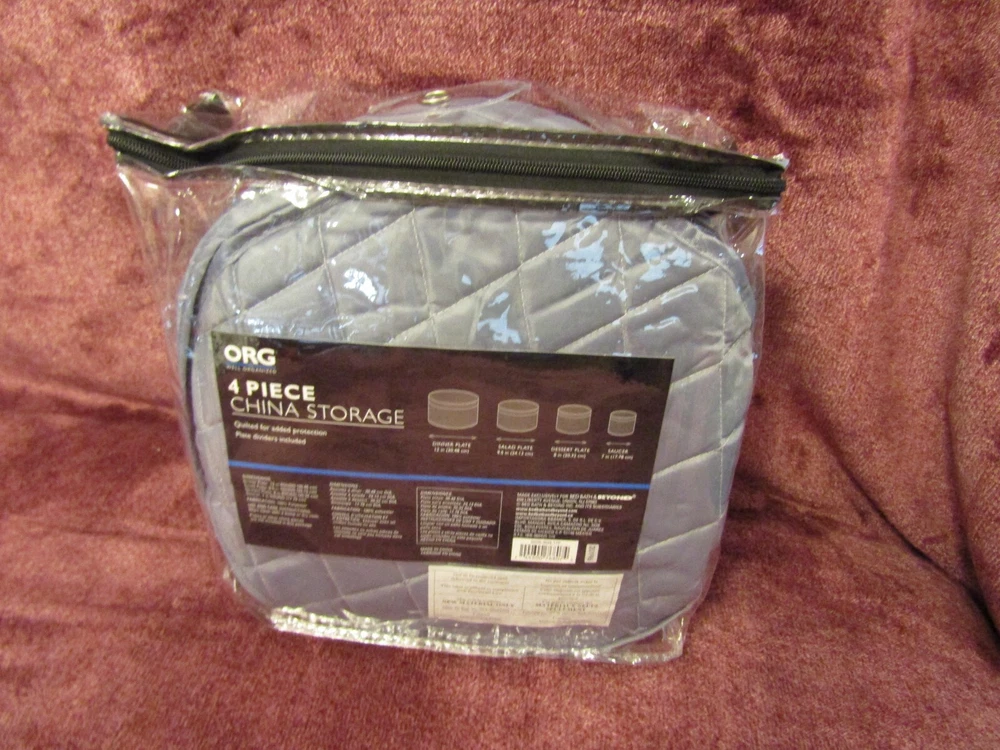 Quality Items - Guaranteed to be as Advertised - U.S. Seller - One Day Handling Time - Free U.S. Shipping New Bed Bath & Beyond ORG Well Organized China Storage Soft Quilted 4 Piece Set - Protects Service for 12 - NEW, manufacture's original packaging - Packaging may show some light shelf wear and handling marks - P lease refer to the pictures as an accurate assessment of this item - Comes exactly as pictured unless otherwise noted - Great Price! What you see in the pic is exactly what you will be getting unless otherwise specified. We encourage honest, accurate feedback and feel anything less than 5 Stars will result in a FAILING grade for us as an eBay seller. If you don't feel comfortable leaving 5 STARS in ALL eBay categories, please contact us immediately to rectify any problems you encountered throughout our transaction process. Otherwise it's best to leave no detailed feedback at all. Please consider the above when posting feedback, so we can continue to offer our quality products at reasonable prices. If you have any issue with the order, please let us know as soon as possible and we will get back with you immediately with an equitable solution. All returns subject to a 20% restocking fee.
