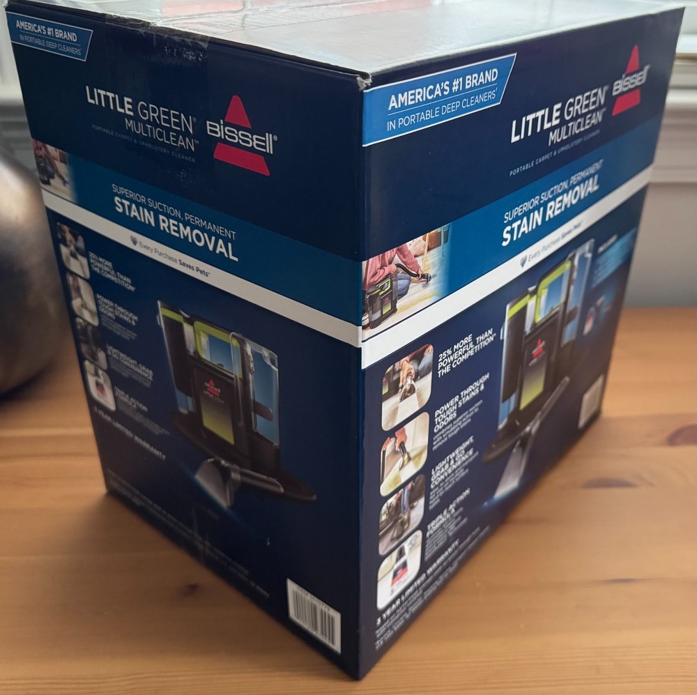Brand new factory sealed package. Superior Suction: 25% More Powerful Than the Bissell Competition Instant & Permanent Pet Stain Removal with Pet Pro Oxy Spot & Stain Formula Self-Cleaning Tough Stain Tool Helps to Rinse Out Residue, Dirt and Debris Easy to Use: Longer Hose and Cord Let You Easily Clean Hard-to-Reach Messes Spray, Scrub and Suction: Triple Action™ Cleaning Removes Tough Pet Messes The BISSELL Little Green MultiClean Portable Carpet & Upholstery Cleaner is a compact vacuum perfect for quick and easy cleaning jobs. The 32 oz capacity is ideal for tackling small spills and stains, while the included accessories like the - Pet Hair Removal Tool - Upholstery Brush - Crevice Tool These tools make it versatile for cleaning various surfaces. With its corded power source and lightweight design, this cleaner is easy to maneuver and store, making it a convenient addition to any household. Designed by BISSELL, a trusted brand in home cleaning, this portable cleaner is sure to deliver reliable performance.