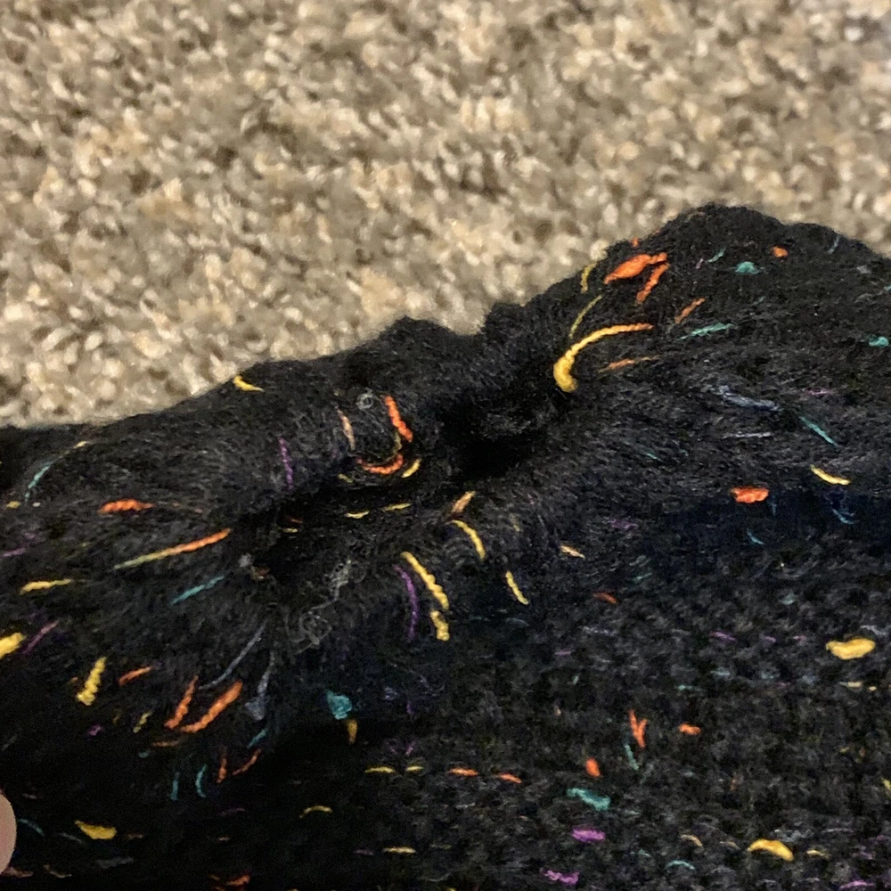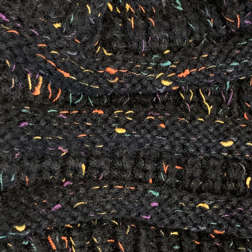 New Black Confetti Beanietail Ponytail Messy Bun Ribbed Beanie Hat Cap Elastic. Super thick and warm Black and colorful “confetti” colored acrylic yarn goes with multiple outfits Ribbed design fits snug and comfortably Elastic band where ponytail comes through