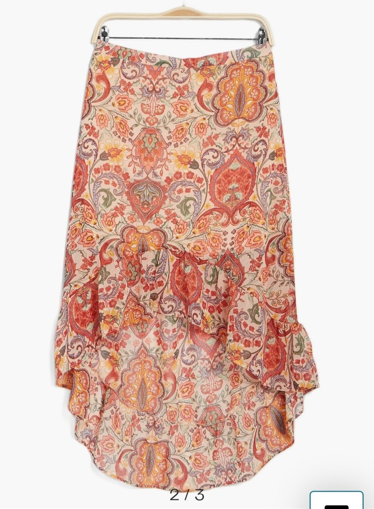 New Status By Chenault Rust Boho Floral Print Chiffon Ruffle High Low Midi Skirt Large L. Elastic Back Waist, Lined , Lightweight, All Seasons , Pull-on. Length Back 36 in Front 22 in , Waist 32 in . Same Day Shipping/ Next Day