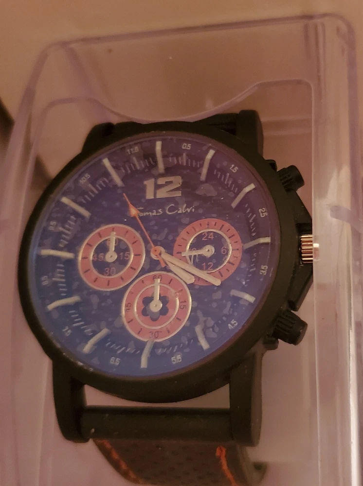 Still boxed and never used although I have put a new battery in. Full working order,please not the chronograph features are just for show. PLEASE CONTACT ME IF YOU WANT TO PURCHASE MORE THAN ONE ITEM. I ALWAYS COMBINE POSTAGE BUT EBAY KEEP STOPPING ME ADDING IT TO LISTINGS BECAUSE OF THE GLOBAL SHIPPING PROGRAMME!