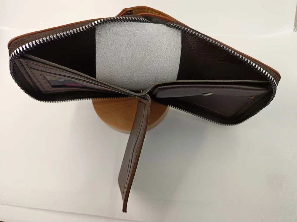 Accents: Zipper Department: Men Style: Bifold Brand: Unbranded Features: Credit Card Type: Wallet Color: Brown Seller Notes: “100% brand new, undamaged” Material: Leather