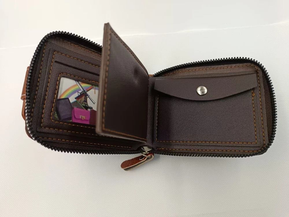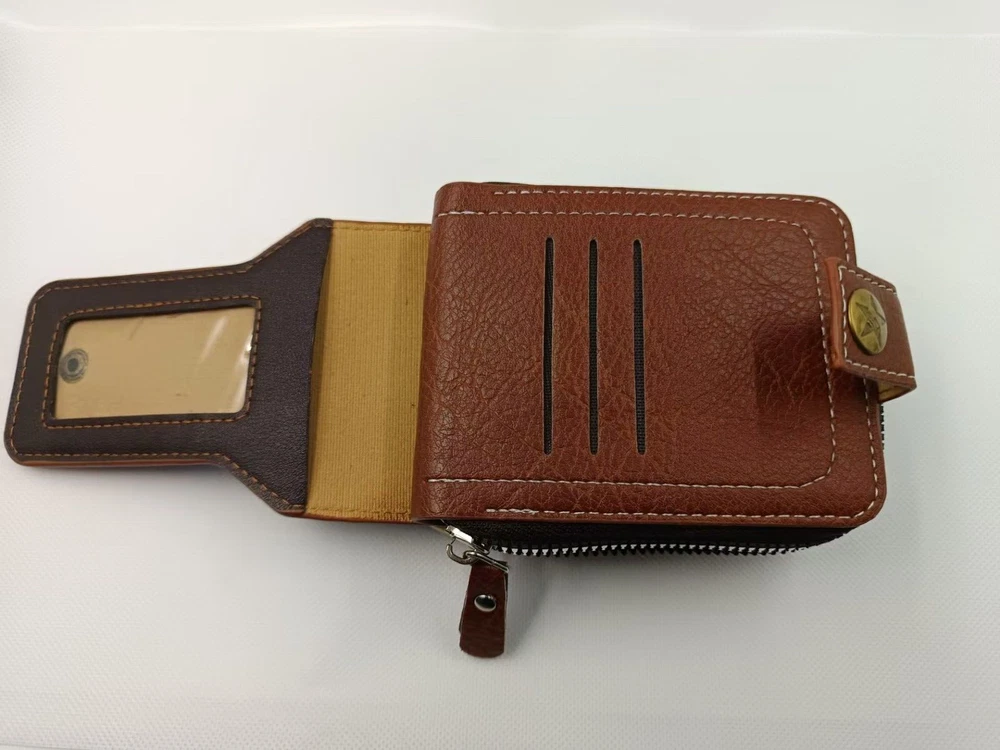 Crafted from high-quality, full-grain brown leather, the exterior of this wallet exudes a rich, timeless aesthetic.The leather is soft to the touch yet durable, developing a unique patina over time with use. The bifold structure allows for easy access and organized storage of your essentials.A sturdy popper zipper runs around the perimeter of the wallet, ensuring all your contents are securely enclosed. The zipper action is smooth and reliable, providing a satisfying click every time you open or close it. Inside, the wallet features multiple compartments and slots to cater to your various needs. There are dedicated slots for holding credit and debit cards, ensuring they are easily accessible yet securely stored. An ID window allows for quick identification without the need to remove your ID card. Additional pockets are perfect for storing cash, receipts, and other small items.Its compact size makes it easy to fit in your pocket or bag without adding unnecessary bulk. Color:Brown The packaging includes: 1x Brown Wallet
