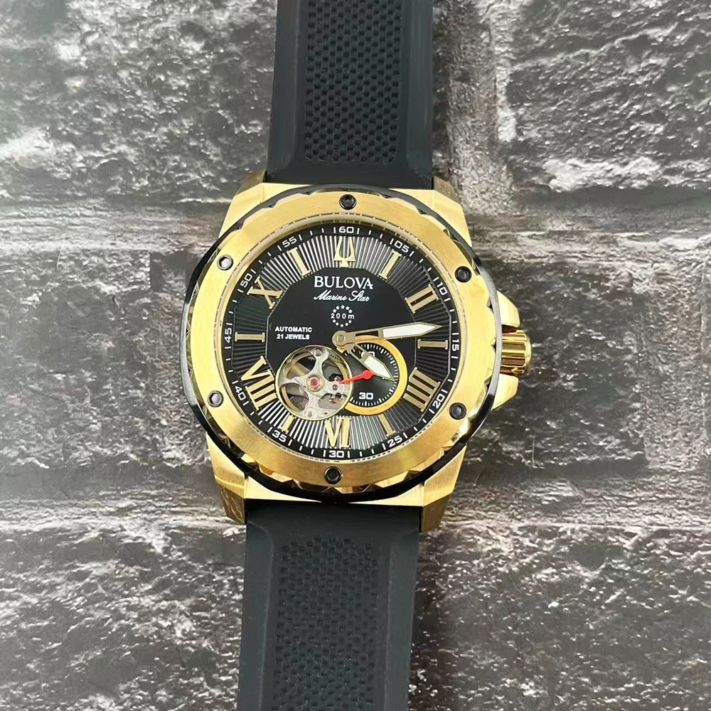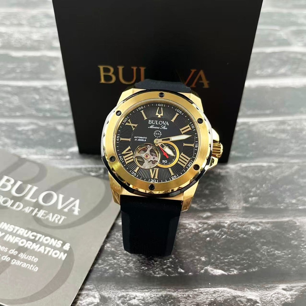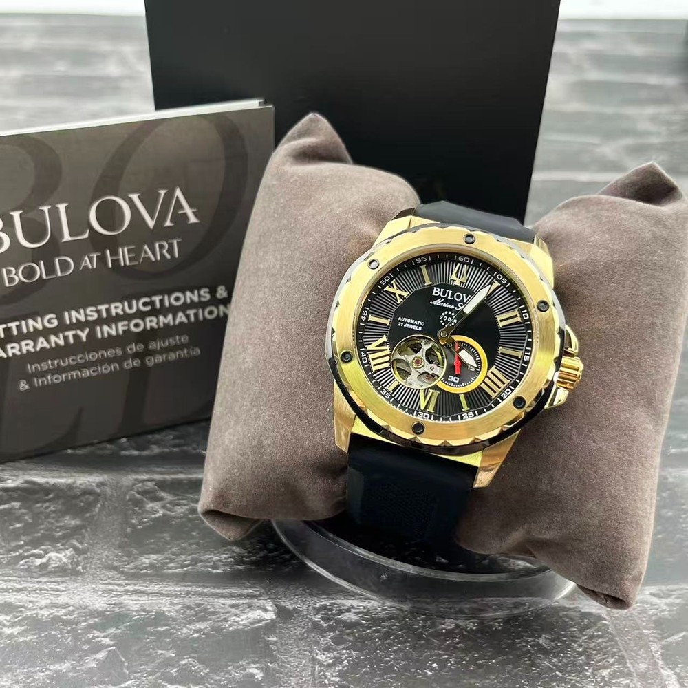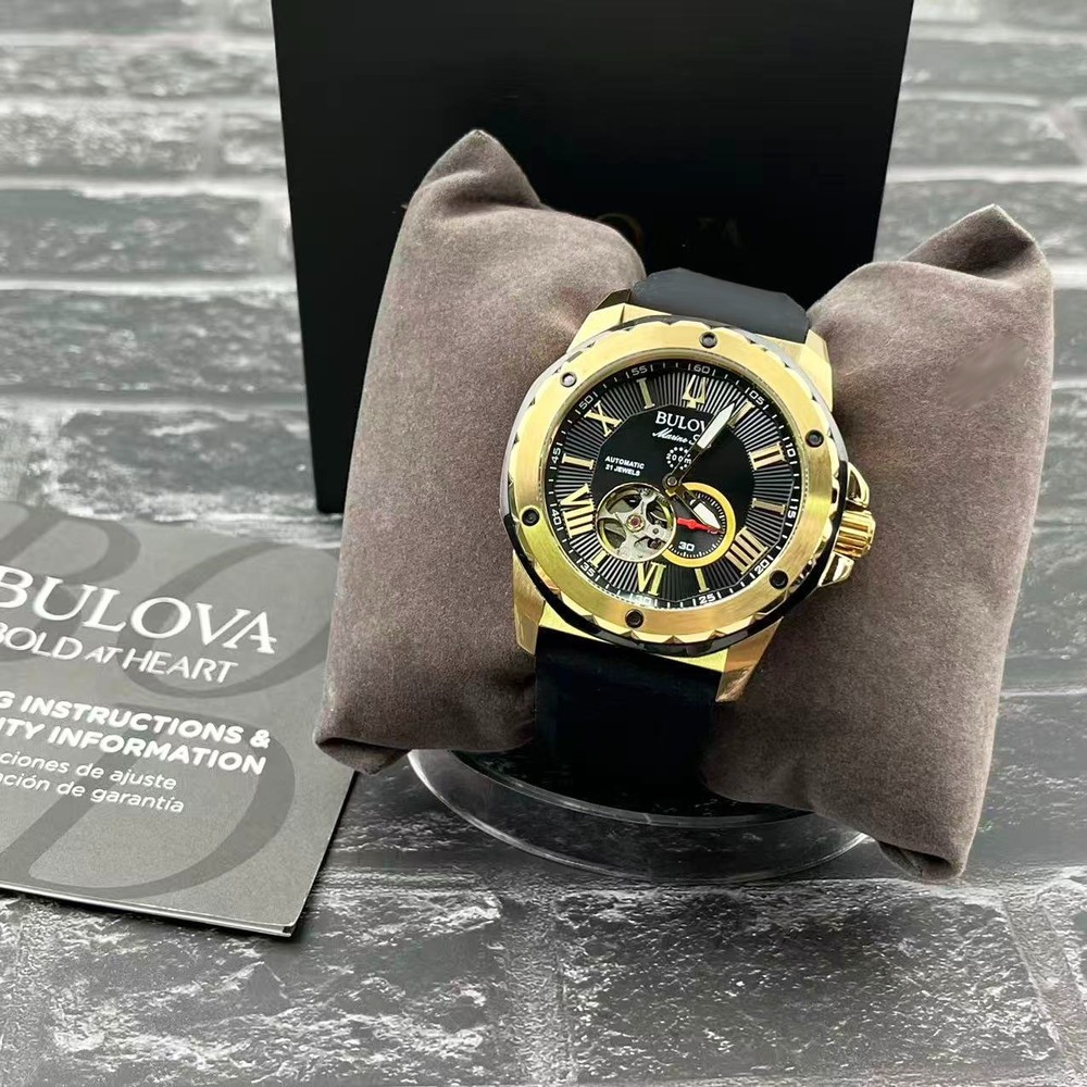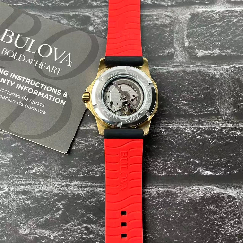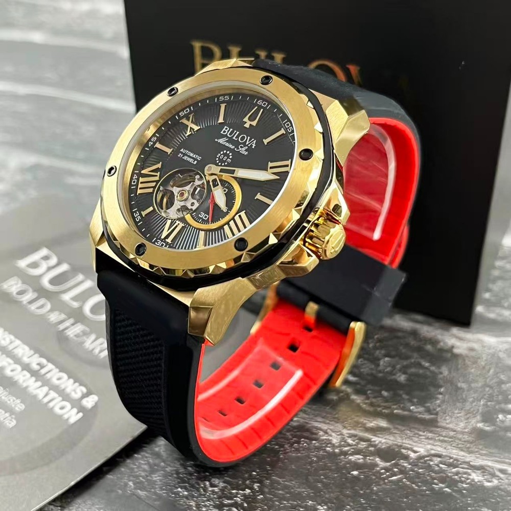 Movement: Automatic Mechanical Crystal: Mineral Crystal Case Thickness: 13.45 mm Lug Width: 24mm Case Diameter: 44.5 mm Case Thickness: 13.45 mm Lug Width: 24mm Dial Color: Black Gold Case Color: Gold Band Color: Black/Red Case Material: Stainless Steel Strap Material: Silicone/Rubber Water Resistance: 200M Shipping We take great care packaging every item to ensure safe shipment to you. Shipping will be shipped out the next business day. Note: Orders placed on weekends or holidays will be shipped the next business day. Business days are Monday-Friday. Returns We accept returns within 30 days of purchase. All we ask is that you pay return shipping and ship back with original box and manuals. Your refund will be processed as money back to your account unless otherwise specified.