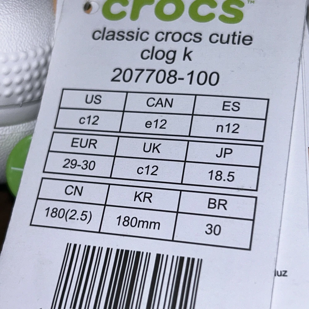 New CROCS Classic Cutie Clog K 207708-100 Kids Unisex White Sz c12