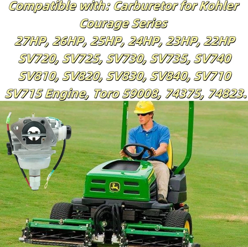 Note: A minor difference in carburetor design may result in a different model. Please carefully check if the pictures match with your carburetor. And feel free to contact us if you are not sure if this is the right model for you. Fit For: Fits For Kohler Engine Model 's: SV710-840, SV725-0001, SV725-0002, SV725-0010, SV725-0011, SV725-0013, SV725-0014, SV725-0015, SV725-0016, SV725-0017, SV725-0018, SV725-3016, SV730-0001, SV730-0002, SV730-00010, SV730-0011, SV730-0012, SV730-0013, SV730-0014, SV730-0015, SV730-0016, SV730-0017, SV730-0018, SV730-0020, SV730-0023, SV730-0024, SV730-0025, SV730-0026, SV730-0027, SV730-0028, SV730-0029, SV730-0030, SV730-0031, SV730-0033, SV730-0034, SV730-0036, SV730-0037, SV730-0038, SV730-0039, SV730-0040, SV735-0001, SV735-0002, SV735-0010, SV735-0011, SV735-0012, SV735-0013, SV735-0014, SV735-0015, SV735-0016, SV735-0017, SV735-0018, SV735-0019, SV735-0020, SV740-0001, SV740-0002, SV740-0010, SV740-0011, SV740-0012, SV740-0013, SV740-0014, SV740-0015, SV740-0016, SV740-0017, SV830-0001, SV830-0010, SV830-0011, SV830-0012, SV830-0013, SV830-0014, SV830-0016, & SV830-0017 Fits For Toro Model: 59008, 74375, & 74823 Replaces Kohler Engine Part : 32 853 12-S & 32 853 08-S Features: This product comes with best after-sales service. We are committed to delivering durable high-quality carburetors for you. Thank you for choosing our carburetor! Package Includes: 1x Carburetor (As Picture Show, Contact Us If Receive With Missing Parts.)