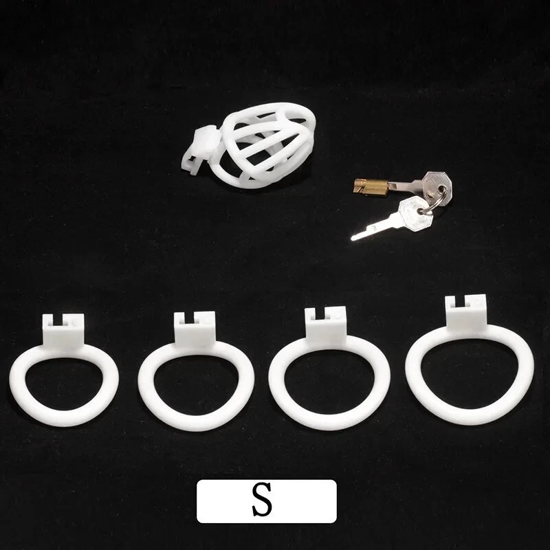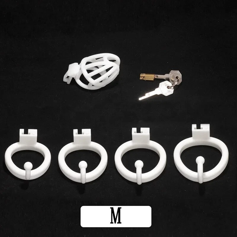 New Chastity Cage Male Anti-Cheating White Breathable Device with 4 Rings Lock
