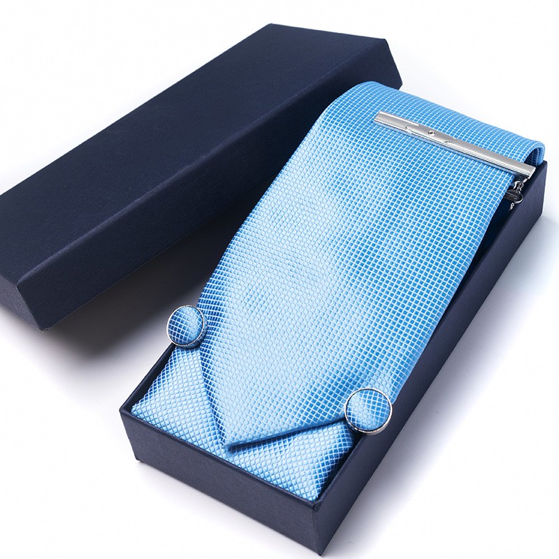 Tie Gift Set, Great Gift Set Includes Tie, Scarf, Cufflinks, Blue Gift Box Tie Size:146x8x3.5cm Scarf Size:25x25cm Cufflinks Size:1.5cm Box Size:17.5x8x3.5cm
