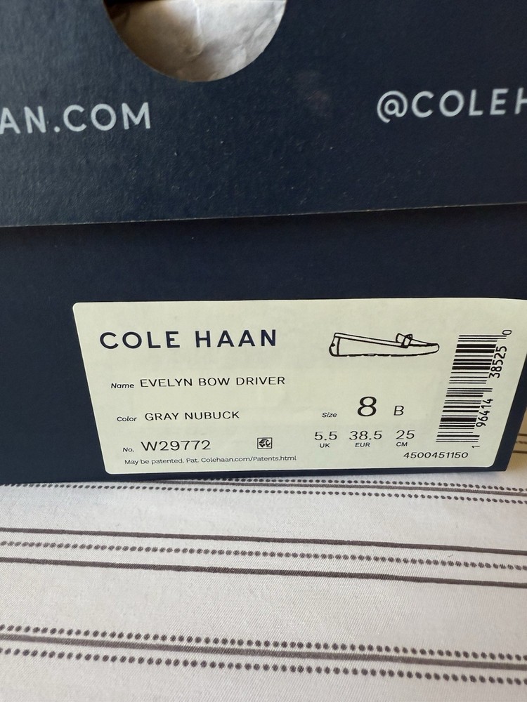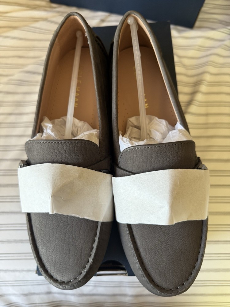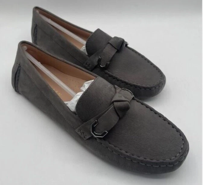 Cole Haan Evelyn Bow Driver Women's Flat Loafer Slip on style Gray Nubuck Size 8B New In Box