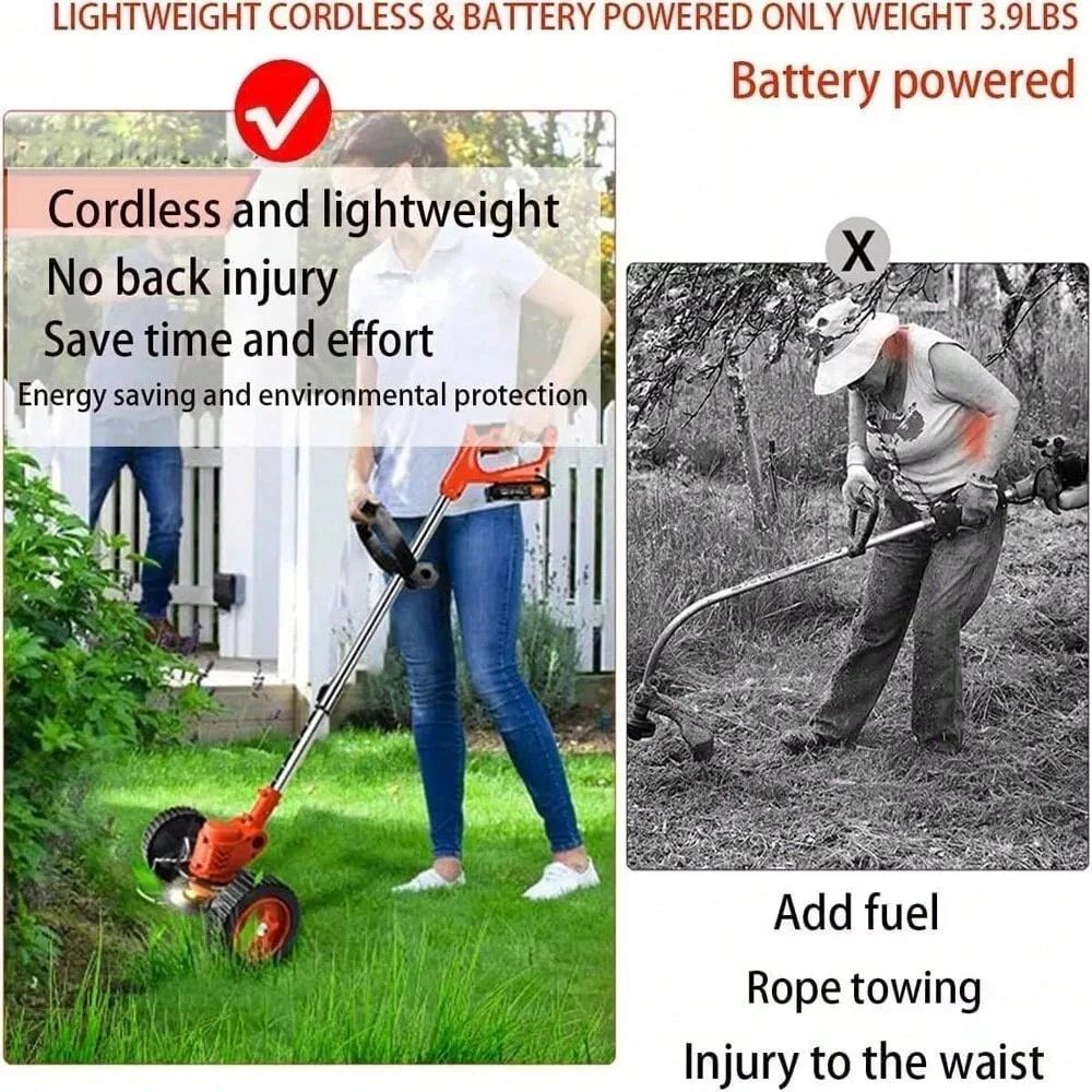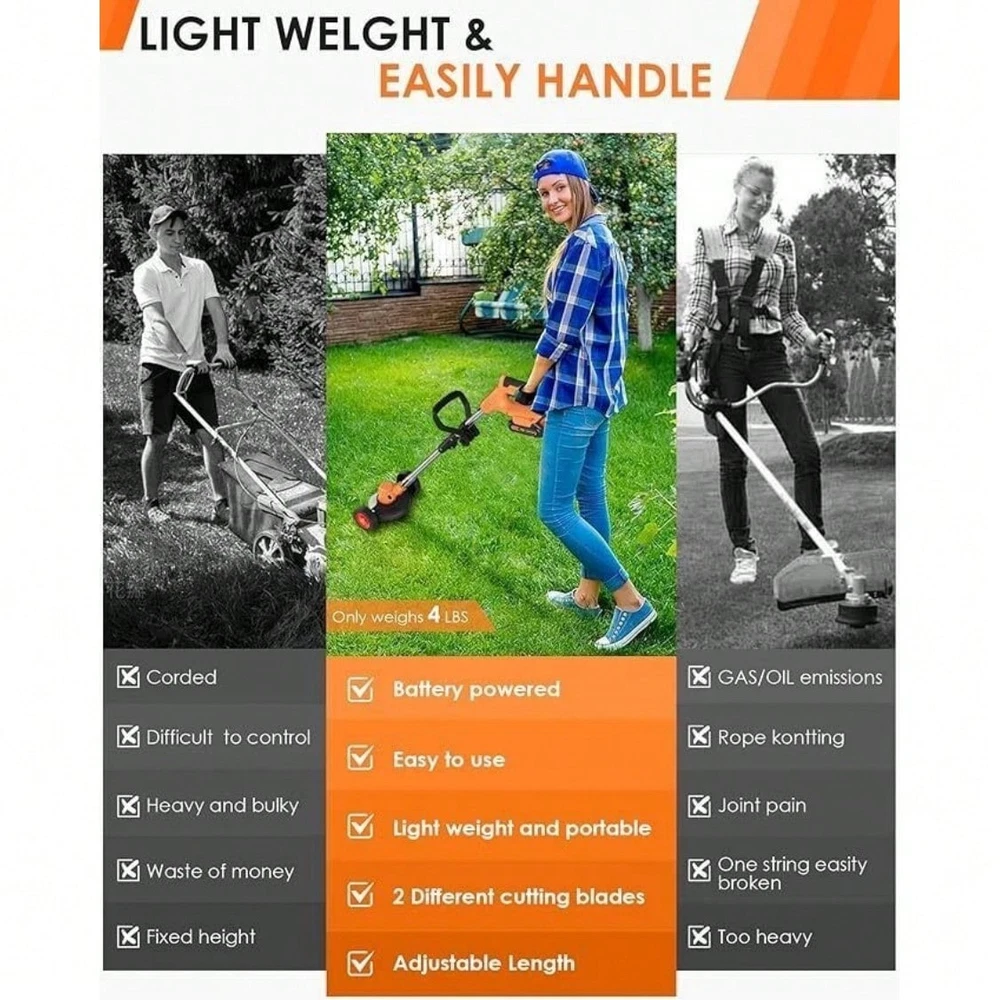 This cordless string trimmer is a game-changer for yard work! Lightweight yet powerful, it cuts through thick grass and weeds effortlessly. The two batteries provide plenty of runtime, and switching between trimming and edging is super easy. No more dealing with cords or gas—just grab and go. Perfect for quick cleanups or larger jobs. Highly recommend!